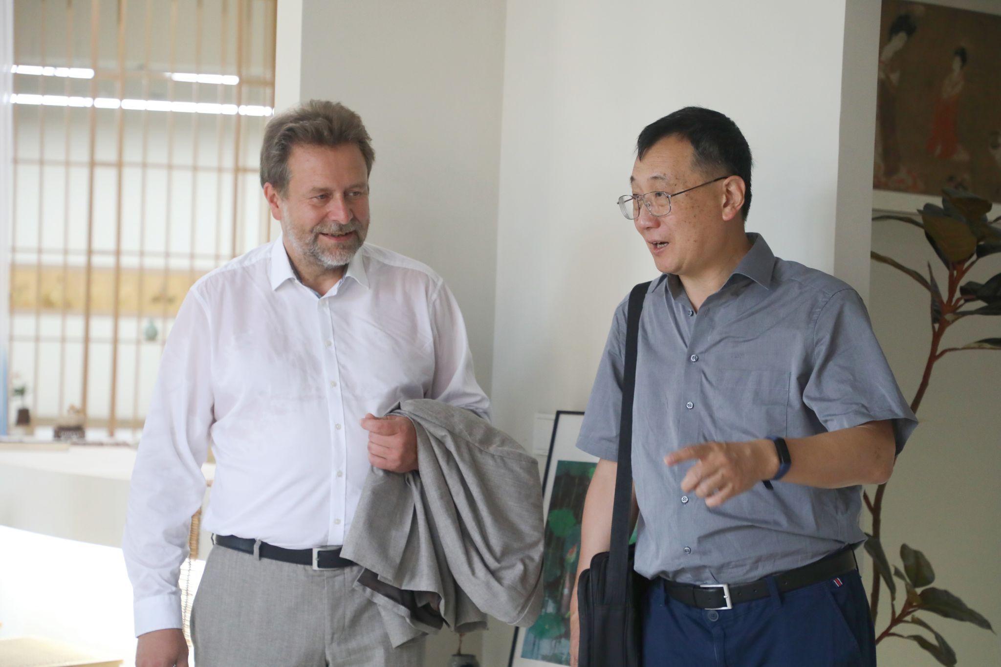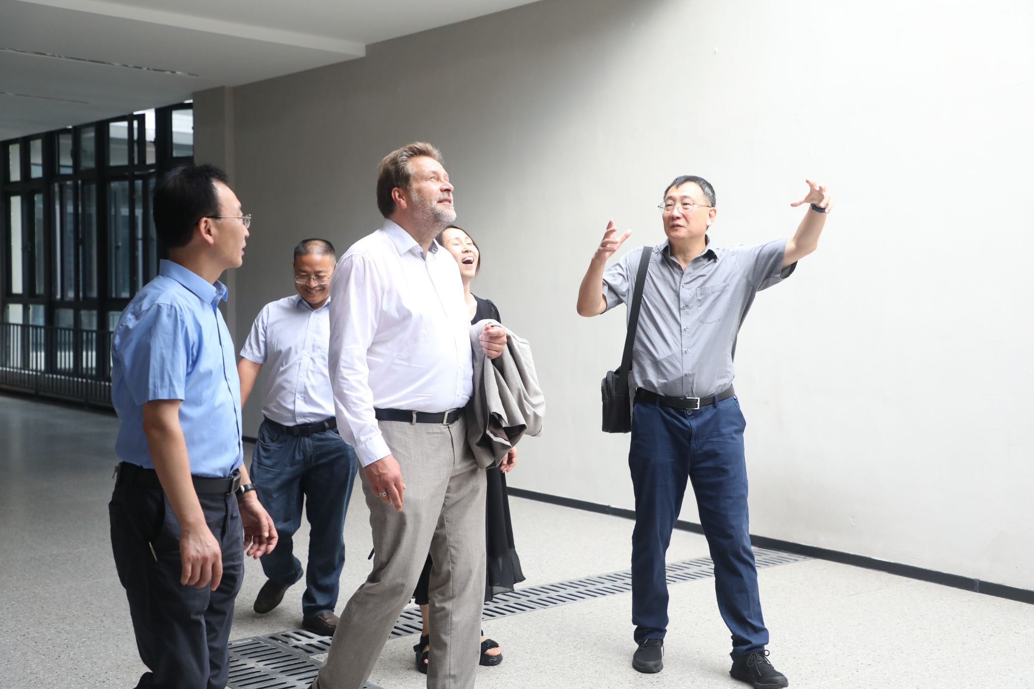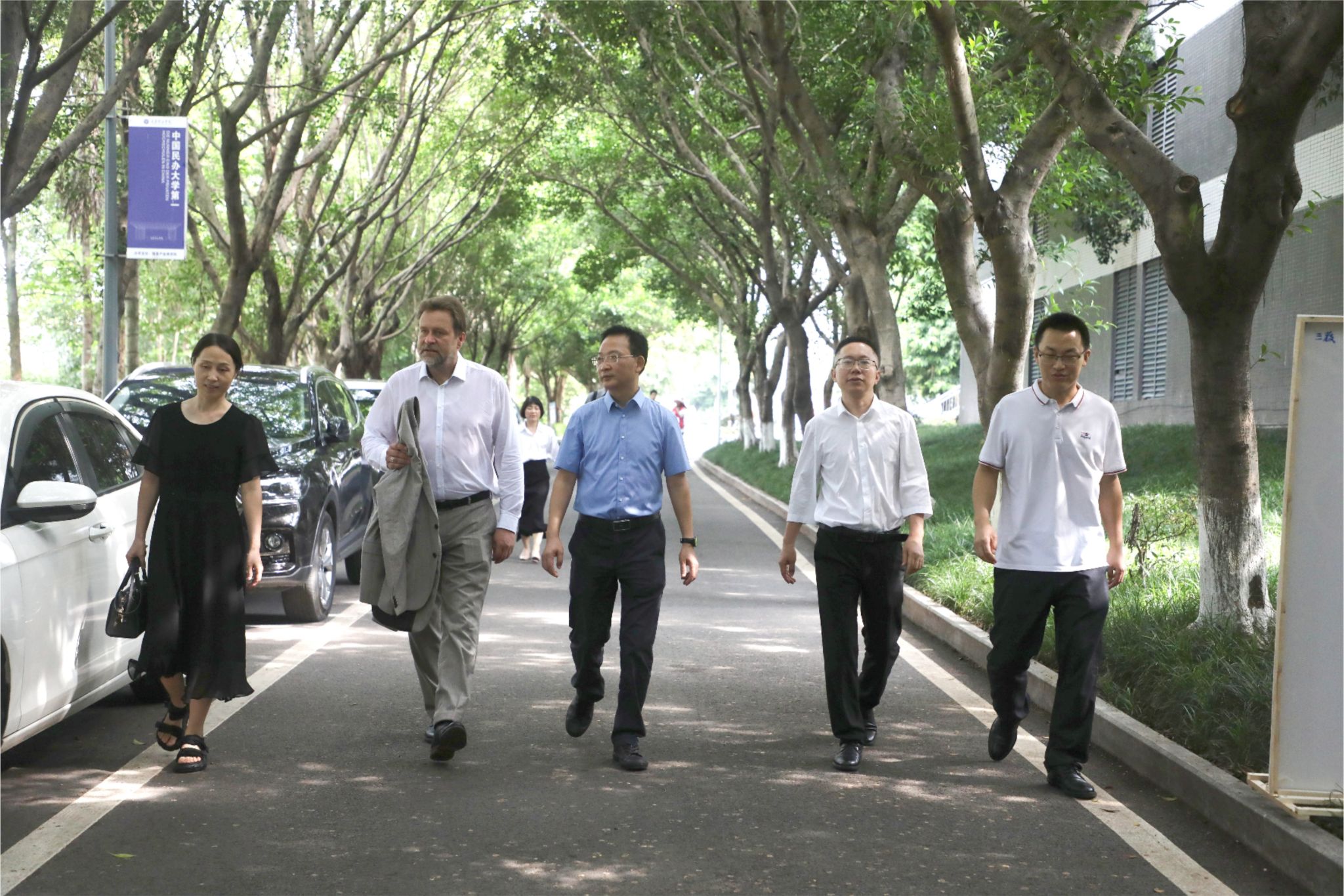 德国茨维考西萨克森应用技术大学Jan Schubert教授二人在吕翊校长陪同下先后参观了钓鱼城科幻学院云端艺术特区、双体卓越人才教育基地、创新创业先锋班、智能工程学院实训室及南湖书院。
