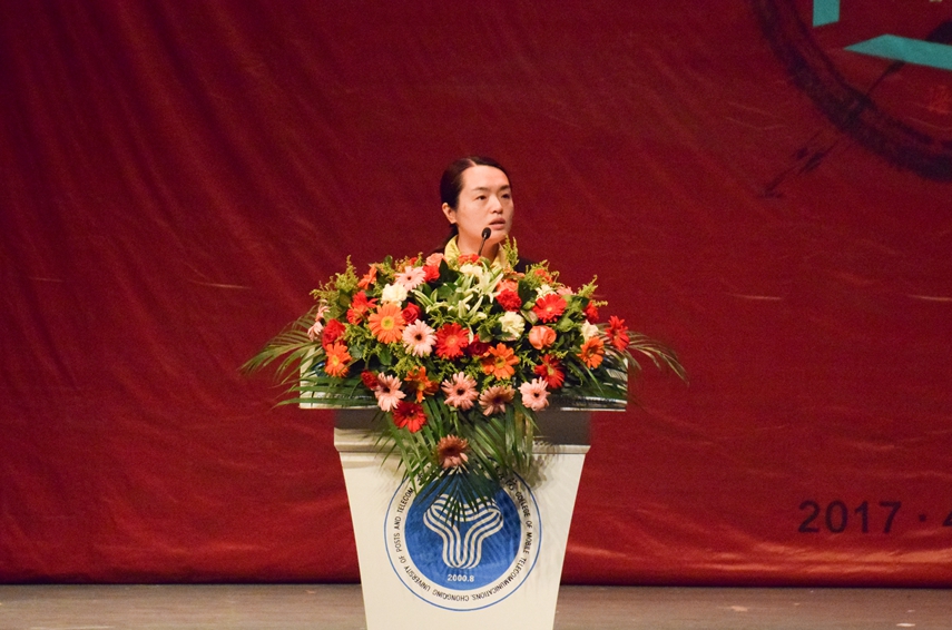 在开幕式上,重庆市剧协秘书长徐冀对我校校园戏剧节给予了高度评价,“重庆邮电大学移通学院举办的校园戏剧节,让更多的同学关注和参与到戏剧的创作、表演之中,体现出移通学院师生的戏剧编、导、演的艺术才华。戏剧艺术是有力量、魅力的艺术,愿你们恋上戏剧,把戏剧作为人生的伴侣,在戏剧百花园里吸取营养,收获智慧。”她号召师生们“积极投身到校园戏剧节里来,借助这方舞台,展示你们向真、向上、向善的青春风采,丰富你们的人生旅程,用戏剧的力量为构建活力四射、丰富多元的重庆邮电大学移通学院积极行动起来。”