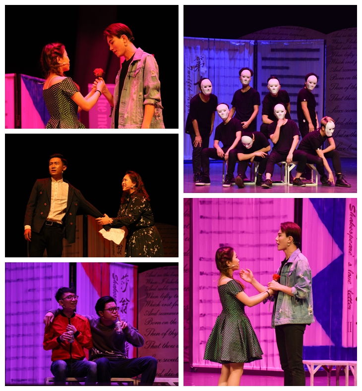 《莎翁的情书》作为开幕大戏,由大学生音乐剧B团紧锣密鼓筹备、精心排练了半年时间。演员们依据音乐剧故事主线,以多幕剧的形式,演绎了匆忙城市中四位主人公的爱情经历,当他们遇到棘手的爱情问题时,都向莎翁笔下的故事借境,但最终都以失望收尾。全剧隐约之中时刻把握着莎士比亚剧作的脉搏,也在玩转莎翁,每个剧目的最后一句“莎士比亚你骗人”,带来的既有挑战原著的震撼,也是向经典致敬。该剧在窥探现代都市人情感故事的同时,也引发了人们对于理想爱情的思索。