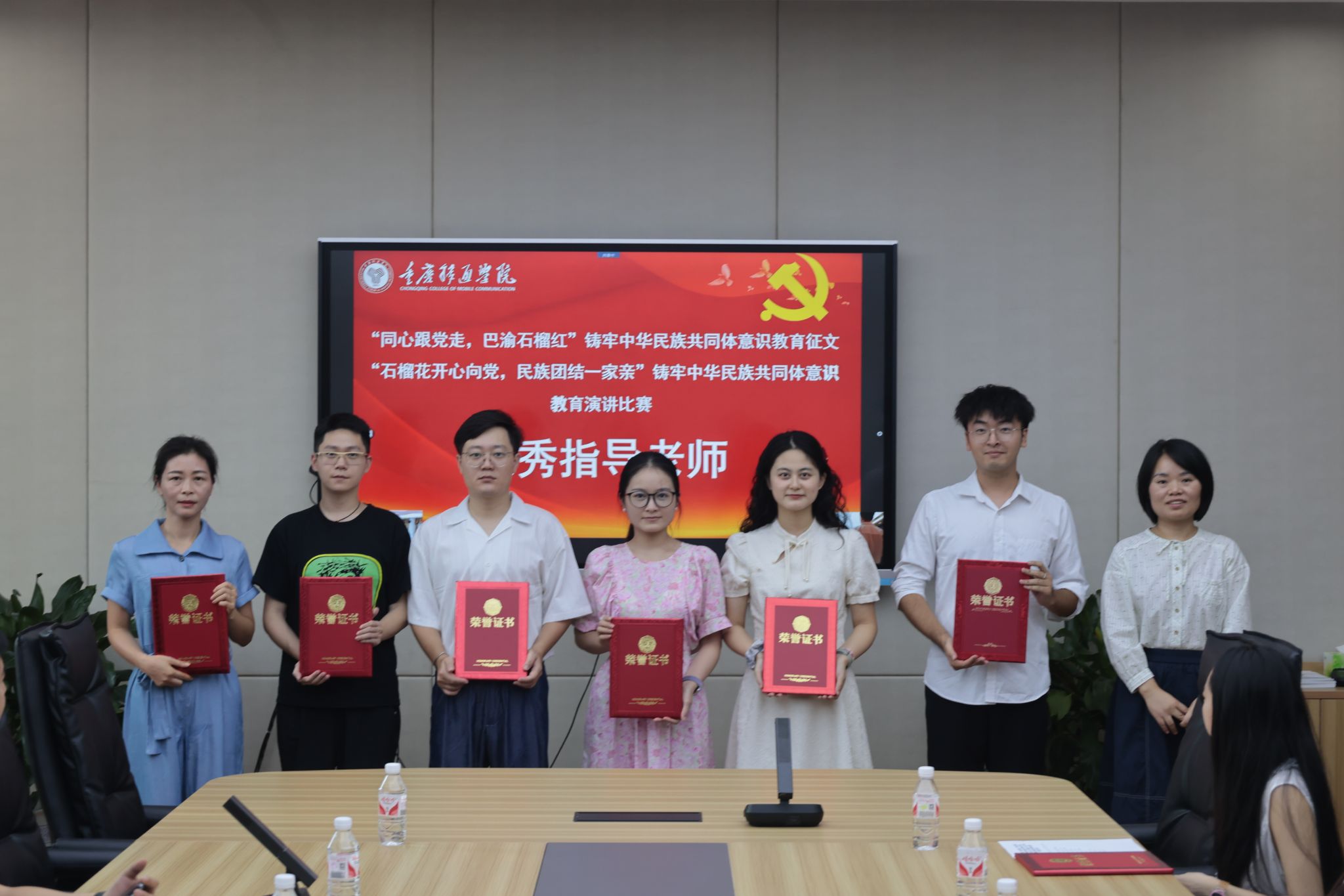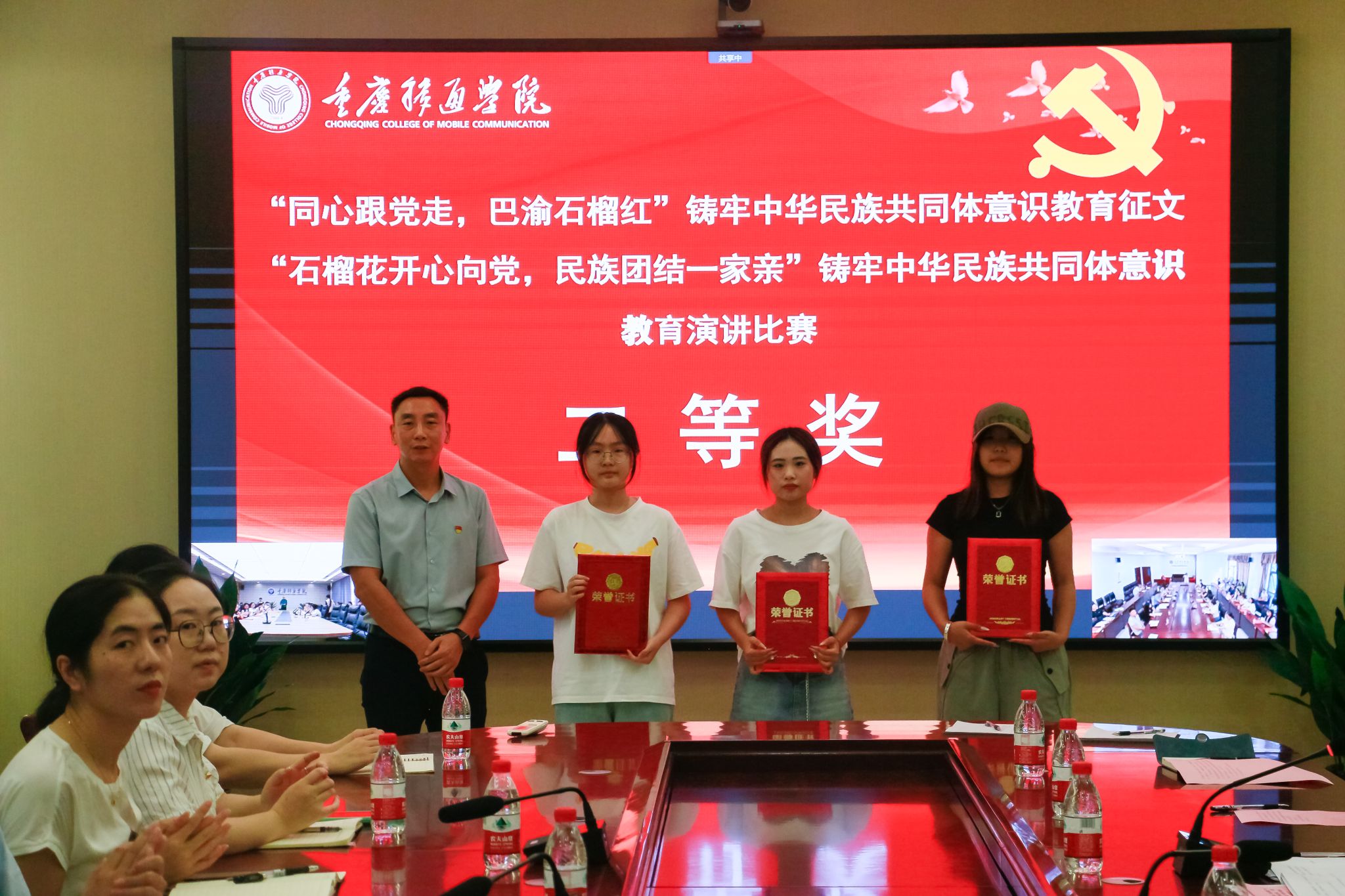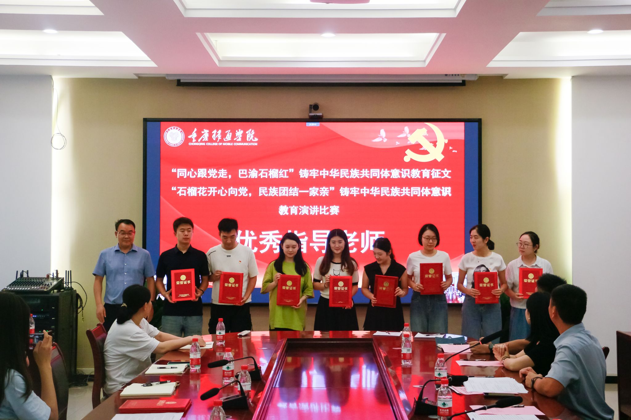为深入贯彻习近平总书记关于加强和改进民族工作的重要思想,并进一步加强了我校中华民族共同体意识,9月27日下午,我校双校区分别在107会议室、图书馆414室同步开展“同心跟党走,巴渝石榴红”铸牢中华民族共同体意识教育征文活动及“石榴花开心向党,民族团结一家亲”铸牢中华民族共同体意识教育演讲比赛的颁奖仪式。我校党委书记何先刚,校长助理谢银平,统战部部长秦代辉,各职能部门负责人、统战团体及民主党派代表教师、基层党组织统战委员、评委老师、优秀指导教师代表、获奖学生代表出席本次颁奖仪式。