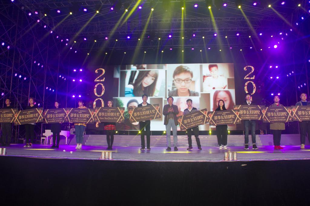 全场观众翘首以盼的“董事长特别奖”抽奖环节终于到来。重庆翔美教育集团CEO、学院董事李茂军女士走上台,在万众瞩目中抽出今年的8个董事长特别奖和3个董事长特别大奖。来自淬炼商学院的龙凤、通信与信息工程系的郑美玲、中德应用技术学院的左媛媛等11名同学,在欢呼喝彩的声浪中激动地飞奔上舞台。8个董事长特别奖得主,将获得含有魔音耳机、山地自行车、500元购书券、Kindle阅读器的大礼包一份,3个董事长特别大奖得主,将获得微软平板笔记本电脑一台。