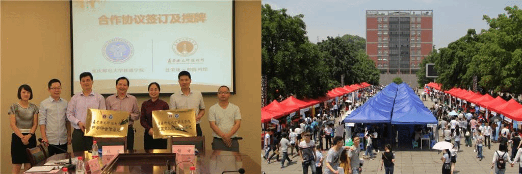 五、学生管理 提升综合服务能力:2017届毕业生就业率与质量稳步提高,2017届本专科4329人,初次就业率达94.92%,年终就业率达96.49%,共获得各类政府扶持资金82万元;双体系第十、十一期学员100%就业,高质量就业分别高达81.3%和81.5%,12期学员83人提前就业,在百度、小米、搜狗、中国航天科技等国内顶尖IT企业高质量就业达76.9%;圆满完成2017年招生任务,我校在全国28个省(自治区、直辖市)投放本科招生计划,除开上海1个省份非一志愿一次投满,其余27个省份均一次投档完成招生计划且分数较高;提档创业孵化大厦,打造创业先锋班,提升孵化成功率;加强学生教育管理服务工作,深入推进精准扶贫等资助服务体系建设;17名学生获得国家奖学金,538名学生获得国家励志奖学金,1名学生获得“重庆市学生资助十周年征文比赛一等奖”,10个学生班级获评重庆市先进班集体,15间学生寝室获评重庆市文明寝室,139名学生获评重庆市先进个人;完善校友组织框架,提升校友网络资源活力激发;新增校企合作企业21家。