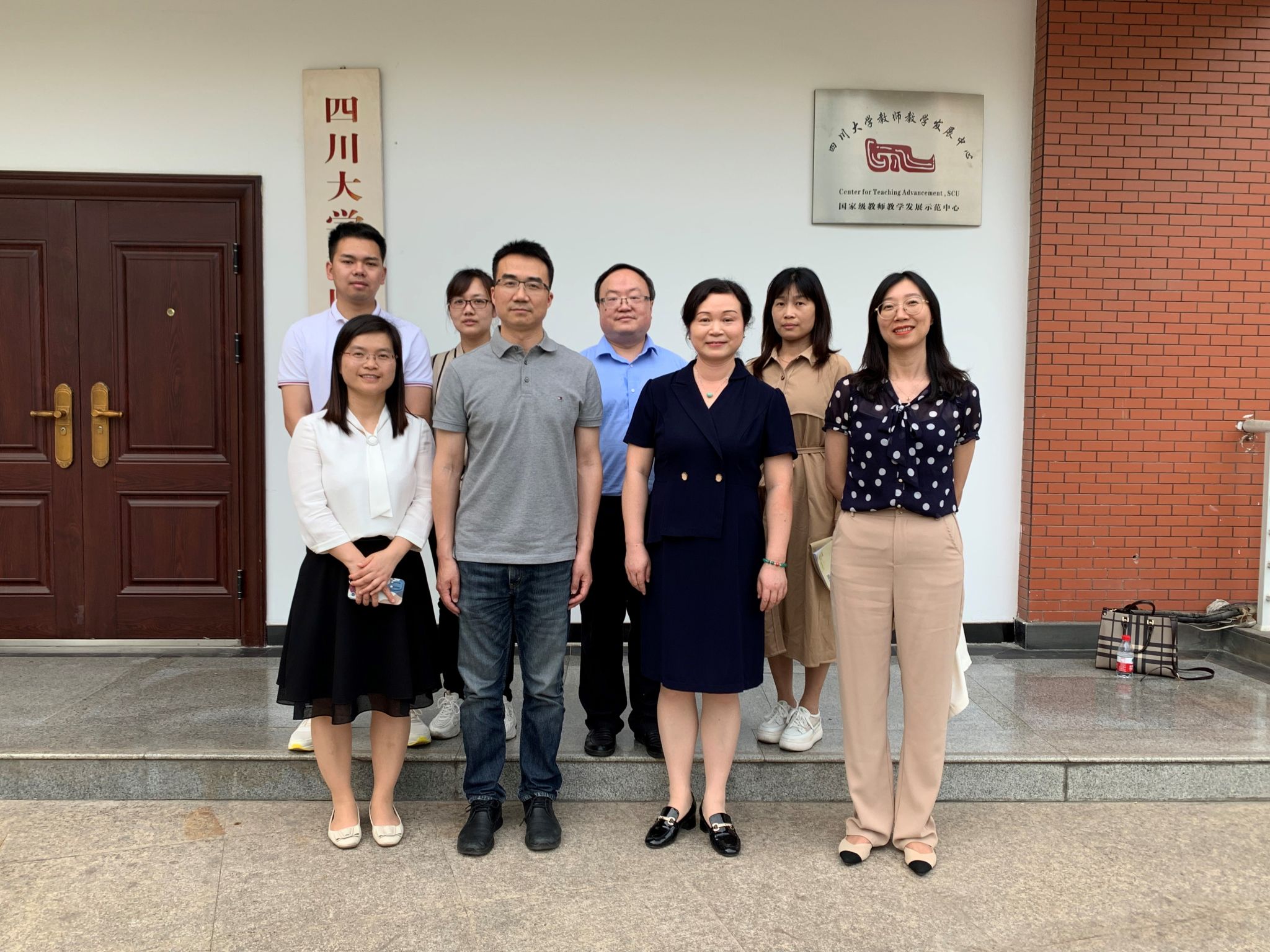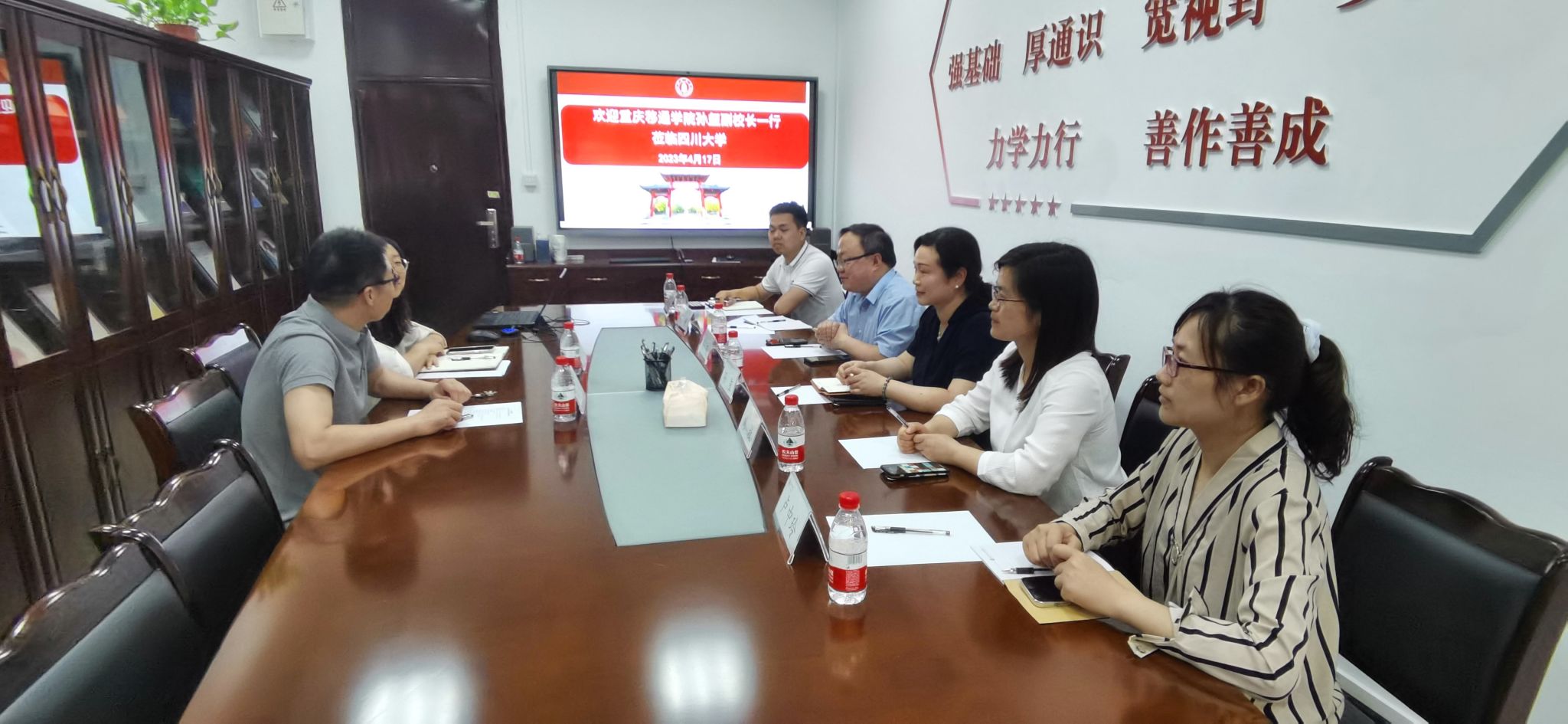 4月17日下午,孙校长带队来到四川大学望江校区,四川大学教务处副处长龚小刚介绍了四川大学的发展历程,从四川大学本科教育的基本情况、以学为中心教学方法改革,多元化教师培训、小班化教学、全过程学业评价,非标准答案考试、万门课程建设计划、国际化教育、跨学科交叉合作、智慧教学、双创实践等方面介绍了本科人才培养体系构建经验;教学研究科科长蒋明霞从教学成果奖的内涵、孵化、培育、申报等方面介绍教学改革成果培育经验。