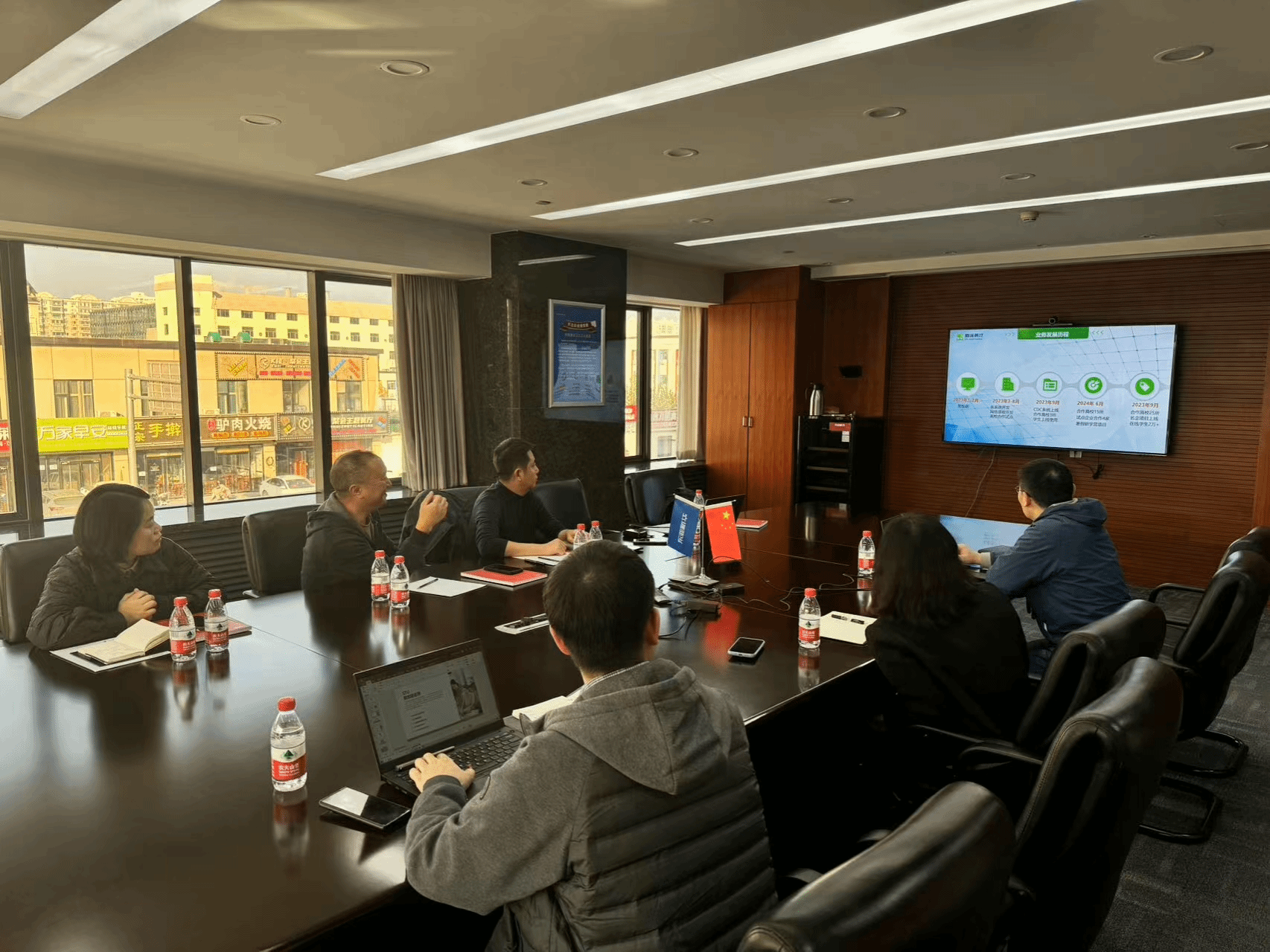 我校详细介绍了“四位一体双院制+特色课程”育人模式所取得的丰硕成果,以及书院制在学生综合素质培养过程中的独特作用,并展示了学校在促进学生就业创业方面的显著成效。王华总经理对学校先进的育人理念和特色书院制给予了充分肯定。