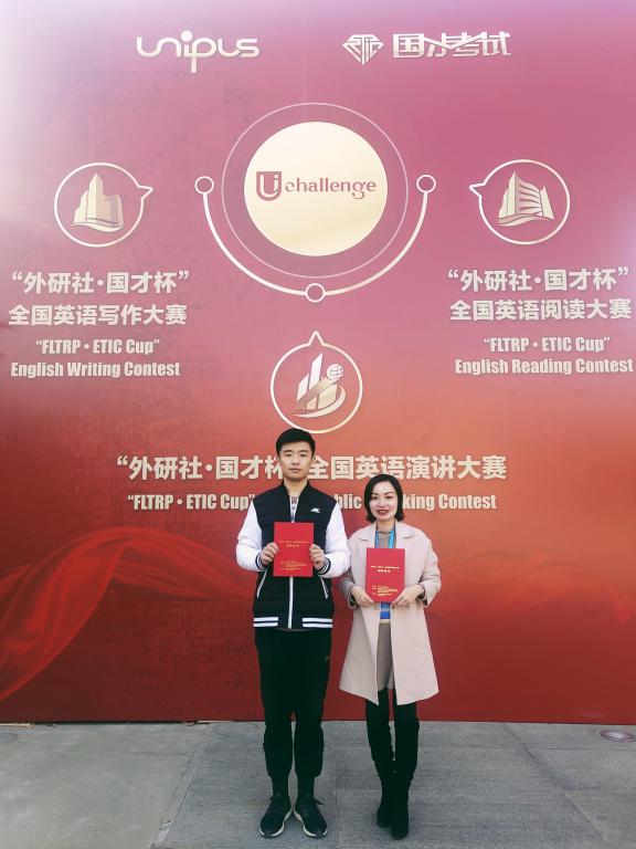 自10月中“外研社·国才杯”大学生英语演讲、写作、阅读挑战赛组织工作启动以来,外语系领导高度重视,积极发动,认真组织。王顾民同学从复赛中脱颖而出后,指导老师对他进行了严格的指导和培训,最后他不负众望,凭借扎实的英语知识和严谨的比赛态度,获得优异成绩。