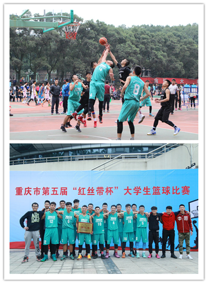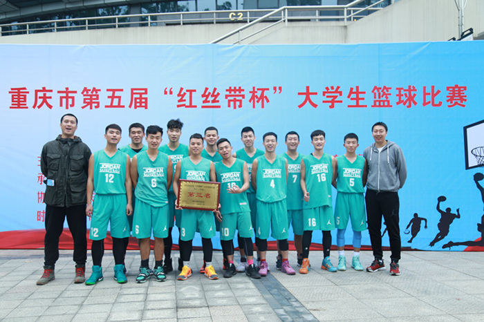 11月12日,由重庆市教育委员会主办,重庆市大学生体育协会及重庆市大学生篮球协会承办的第五届“红丝带杯”大学生篮球比赛在西南大学经过一周的角逐后圆满落幕。在本次比赛中,我校男子篮球队以小组第一的成绩冲出重围,并与重庆大学、重庆邮电大学两所高校进入单循环争夺前三甲。经过战术与体力的博弈之后我校男篮荣获第三名,创下我校男子篮球队历史新高度。