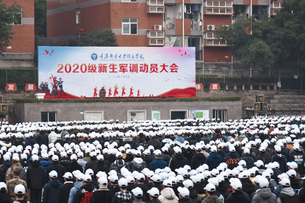 1月9日上午,2020级新生军训动员大会在我校南校区足球场顺利举行。区人民武装部副部长王利军、我校校长张德民、校长助理周伟、李文豹等在校领导以及各二级学院党政领导、军训教官代表出席大会,大会由校长助理周伟主持。