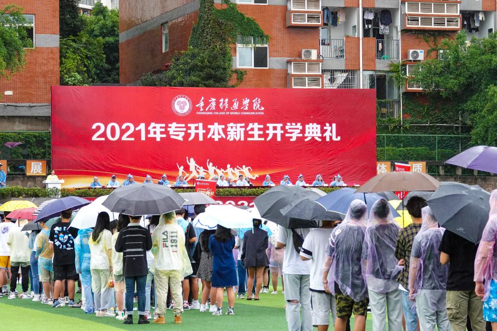 9月6日上午9点,我校2021级专升本新生开学典礼在南校区田径运动场隆重举行。重庆移通学院校长张德民教授,党委书记苏开荣教授,全体在家校领导及各二级学院负责人、师生代表出席开学典礼,合川校区3000余名专升本新生冒雨参加。大会由副校长周伟主持。