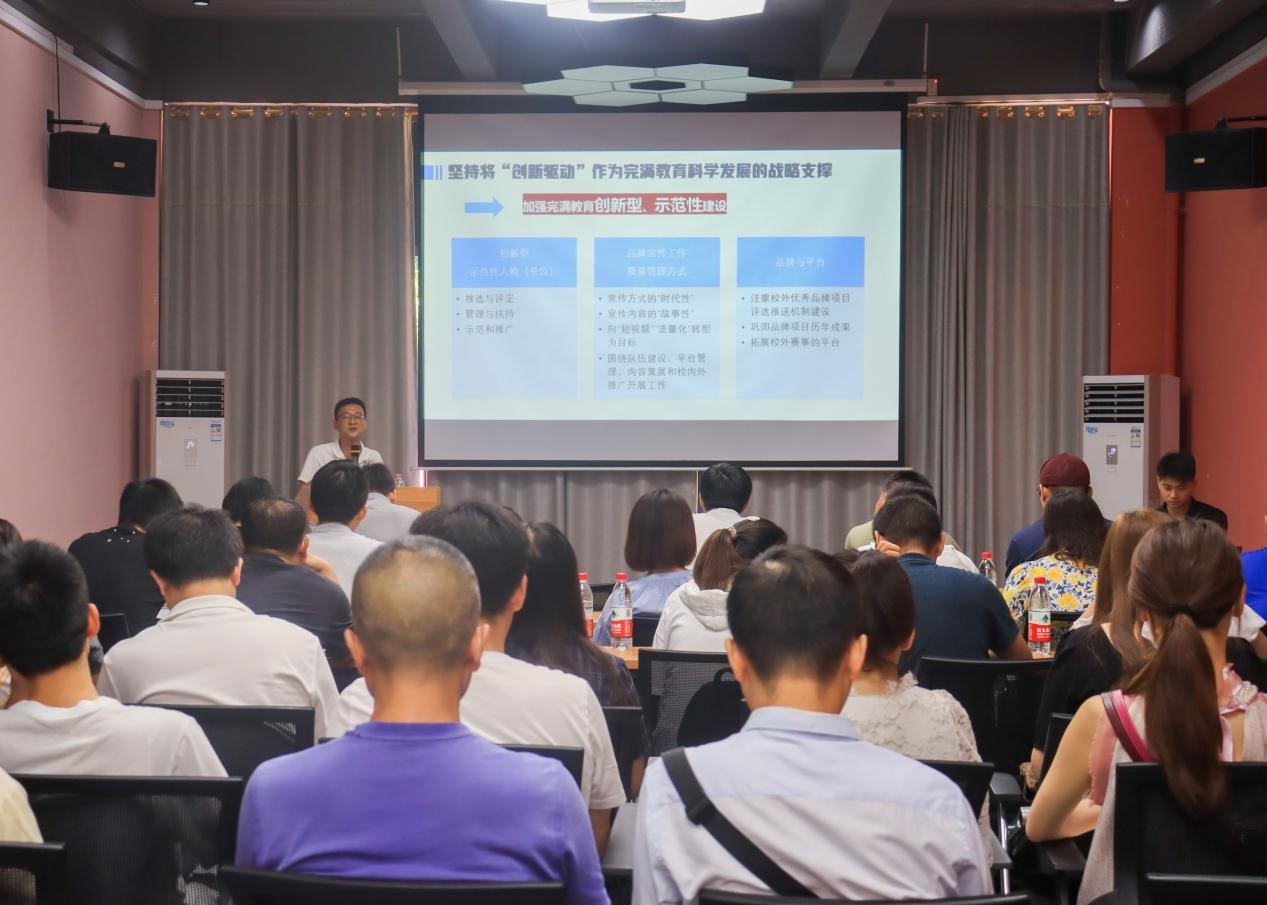 会议第一项为完满教育委员会扩大会议,副校长李文豹针对2021-2022学年完满教育目标与规划做专题解读,围绕本学年年度建设主题“焕新提质年”,结合“教师与学生”双主体、“合川与綦江”双校区等七个“双维度”做好七个“专注”和七个“推进”,在要点部署和工作安排上提出新要求,强调机制建设立足于双校区一体化协同发展,同时提出将“十周年”概念多维度融入各项全学年工作,全力推进完满教育极致化发展。并针对完满教育各板块工作进行梳理,社团方向,围绕特色化创新,推进社团活动品质化发展;志愿服务紧扣社区化拓展,提升志愿服务实践社会影响力;艺术修养立足原创化发展,建设艺术实践高品质生态;竞技体育立足专业化发展,推进体育项目创新拓展;书院建设围绕内涵式发展,优化书院特色品牌建设。同时强调围绕规范式管理,推进共青团引领式发展,坚持党建带团建、团建促党建双向融合。从多个维度焕新完满教育姿态,提质完满教育内涵,解读过程以真实完满案例和具体举措的剖析,为规划的要点生动画像。