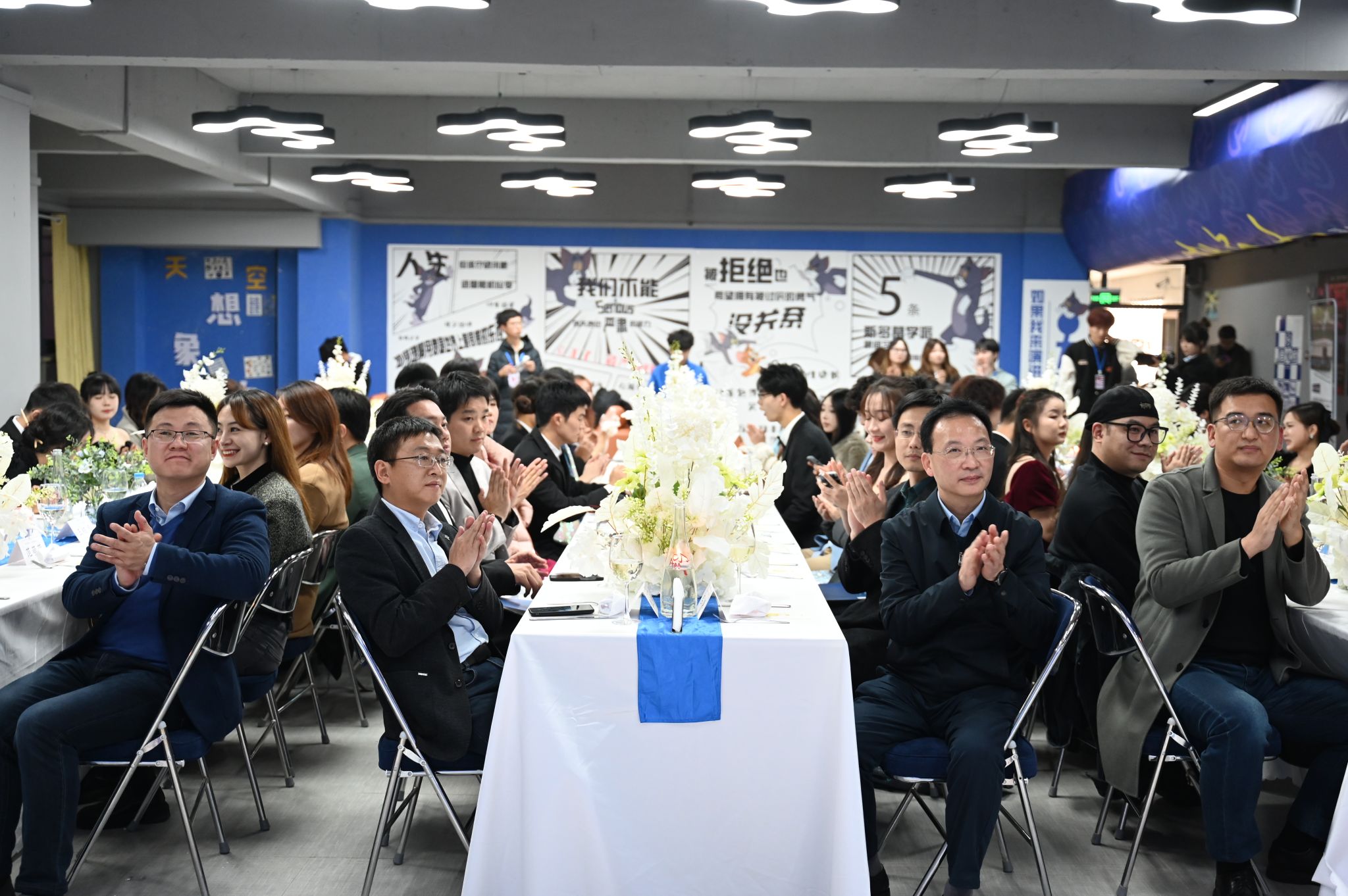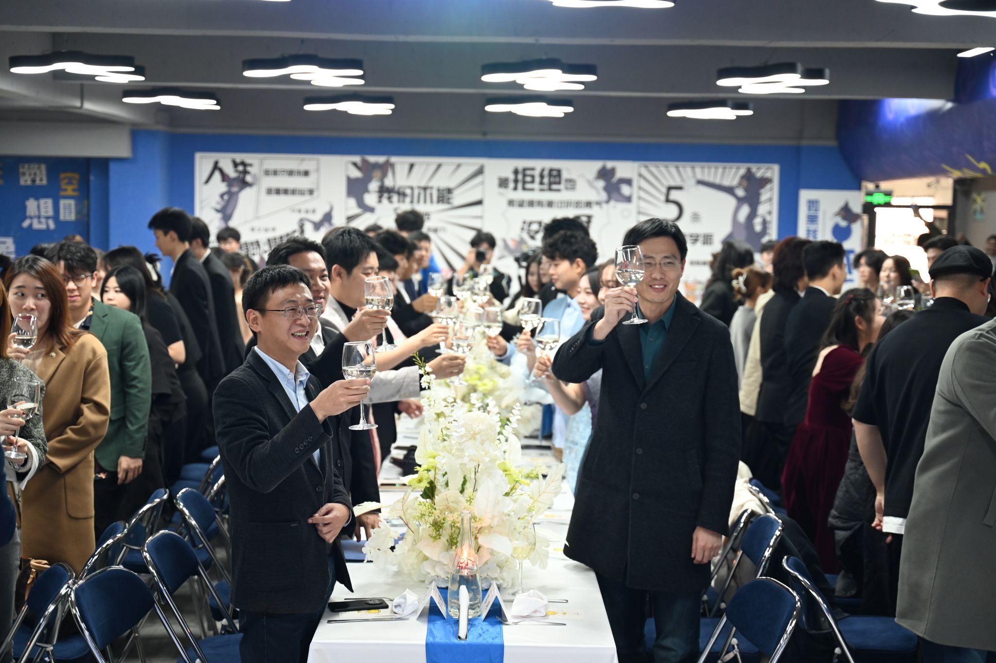 现场,重庆移通学院校长吕翊为本次晚宴致辞,吕校长在致辞中对体育、艺术双赛道取得的蓬勃发展、优秀成功进行了表扬赞赏,伟大的精神能够催人奋进,艺体师生用拼搏创造了梦想,也用拼搏为校增光添彩,希望在未来艺体师生的拼搏精神能感染更多学子,让精神传递,让荣誉继续书写,并感谢在过去为我校体育艺术事业所付出努力的全体成员,用自己的亲身经历砥砺师生代表奋进续写新的篇章。致辞结束,吕校长将酒杯举起,这场盛典的气氛也被推向高潮,全体在场师生也一起举杯共同庆祝。