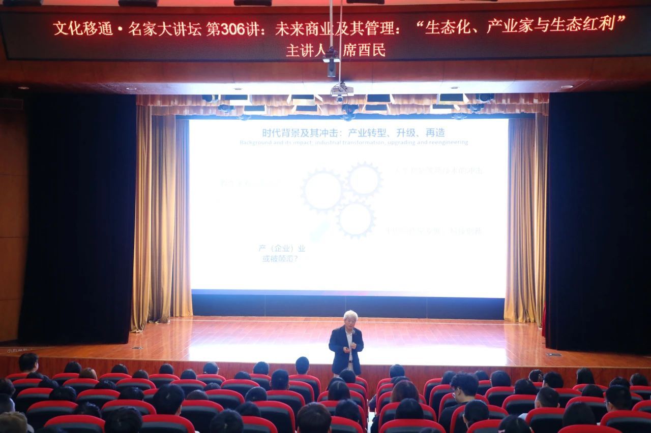 下午16时,席酉民校长在下里巴人剧场举办了题为《未来商业及其管理:“生态化、产业家与生态红利”》的讲座,全校400多名师生参与。