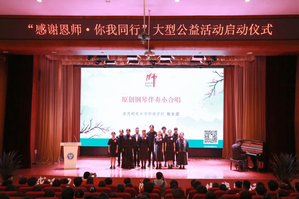 我校校乐团表演了原创钢琴伴奏小合唱,以歌颂师道、感怀师恩。