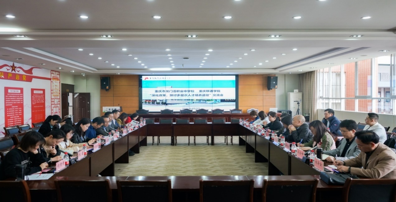 重庆移通学院副校长尹浩亮在交流会上指出,希望通过交流研讨会,能够及时了解龙门浩职业中学“3+4”学生的学习情况及思想状况,能够落实两校的有效沟通交流机制,实施贯通分段培养需要两校进一步加强沟通交流,交流形式应该不拘一格,可以多想一些办法,看哪些工作可以先落地,双方优势互补,互相支持,共同发展,实现贯通培养合作共赢。并且希望通过此次会议,中职院校与重庆移通学院能够加强交流合作,把“3+4”学生共同培养成为让家长放心、让企业满意的人才。