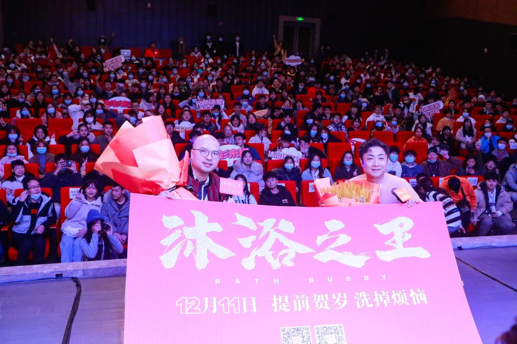 将于12月11日上映的《沐浴之王》主要讲述了富二代肖翔(彭昱畅 饰)因跳伞事故记忆全失,被之前“结下梁子”的搓澡工周东海(乔杉 饰)骗回周家澡堂当搓澡工,开启终身难忘的搓澡生涯的故事。影片聚焦中国传统沐浴文化,以传播中国传统沐浴文化为创作基点,是一部“喜剧+洗具”的喜剧二次方电影。既是对现实生活人情冷暖的深刻映射,也是对中国传统沐浴文化的特色传播。