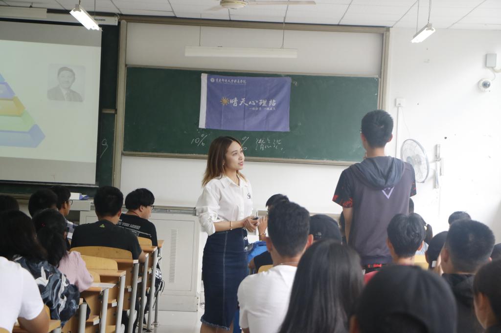 在4203教室,田雨老师正在给同学们上《体验式心理健康课》,主课分为两套拓展性课程,第一套主题是“认识自我,成就未来”,第二套主题是“超越自我,激发潜能”。在轻松、舒适、活跃的学习氛围里,田老师利用同学们喜欢的音乐、角色扮演、表演等各种形式充分调动同学们的积极性;又利用多媒体,创设些形象逼真的情景,以打动学生,让他们有身临其境的感觉,从而达到教学目的。“体验式心理建康课强调实时分享感悟,多形式地交流,在实践中获得认识再运用于实践的反复过程。”