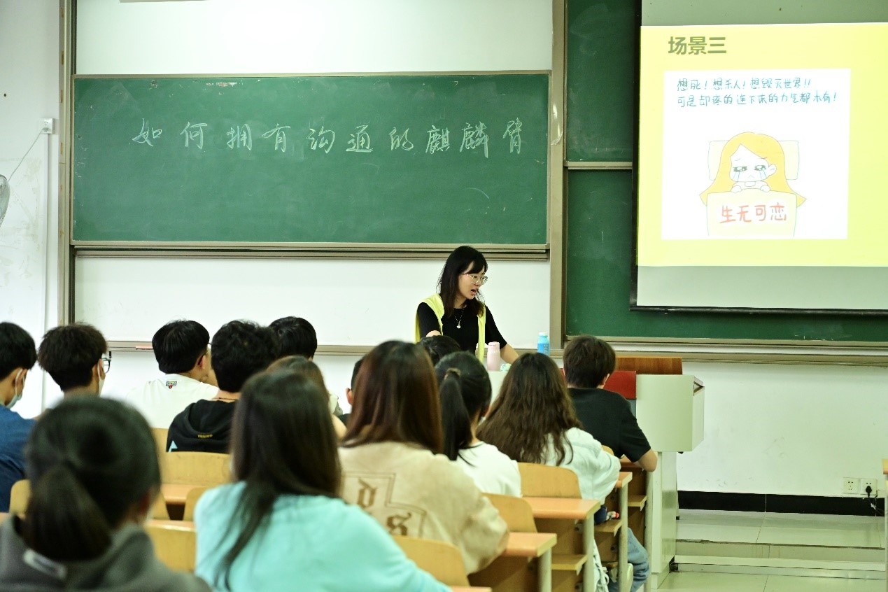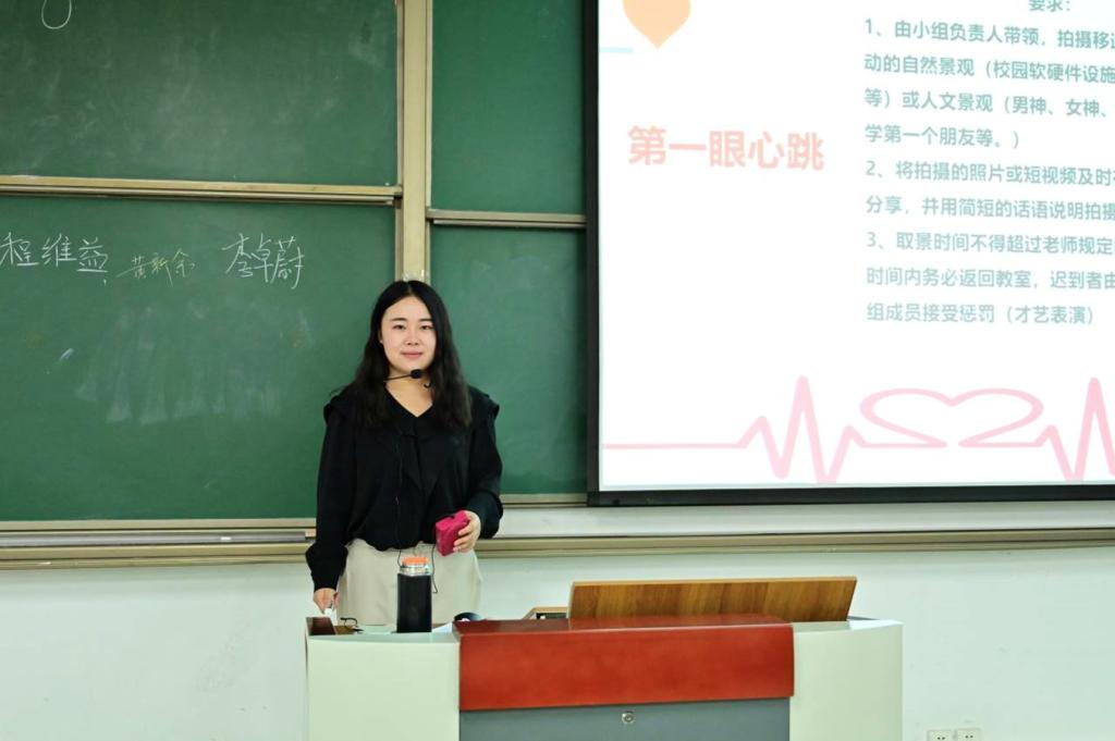 在《新时代大学生活的正确打开方式》课程上,马克思主义学院教师毕毓璟通过人际破冰、大学之路、青春之路、复兴之路四个角度,帮助新生实现高中到大学的角色转变,让新生尽快适应大学生活。在课程教学中,毕老师加入互动体验元素,邀请多名大三优秀学长学姐带领新生们参观校园,拍下校园美景在课堂上进行分享,使同学们更加全面充分的了解大学环境。同时毕老师抓住新生“00后”活跃、积极、好奇心重等特点,以新时代为背景,以案例为引,抛出带有爱国、勤学、奋斗等主题内容,激发新生进一步思考。2022级数字媒体艺术7班学生李银课后谈到:“老师为了引导我们将个人奋斗熔铸于国家发展中,讲述了许多生动的历史故事,这些故事对我的触动很大。”