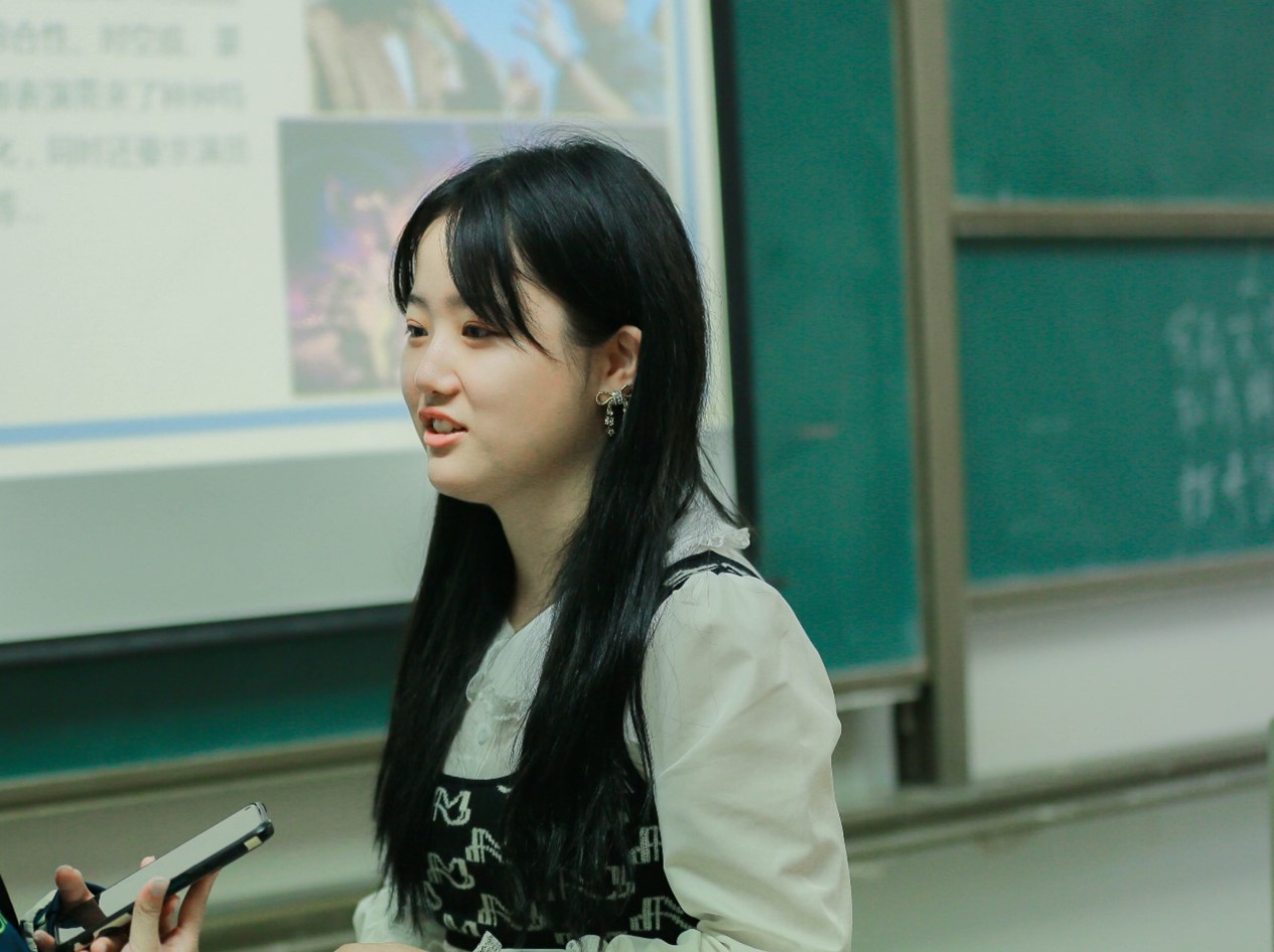 1402教室是钓鱼城科幻学院教师姜明月主讲的《大学第一堂表演课》。姜老师带领同学们模拟演员角色对文章进行有感情地朗读,让同学们通过文章朗读去感受表演中台词的魅力。通过有别于平常说话的朗读练习,同学们吐字的腔调发生变化,台词表达也更加富有情感。课后,外国语学院英语4班同学苏珈铭认为这堂课让她坚定了对表演的热爱:“表演是一种表达,学习表演也是提升表达能力的方法,这堂课非常有趣,我越来越爱表演了。”