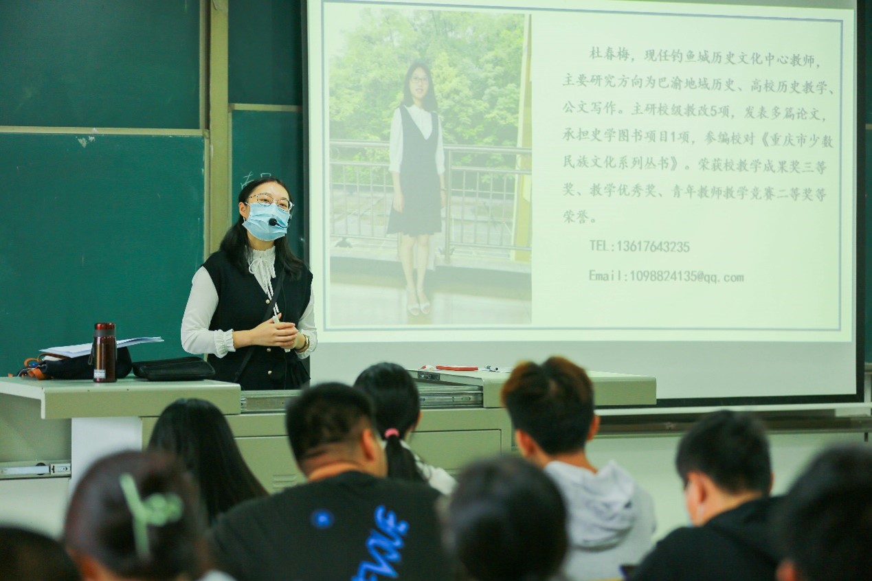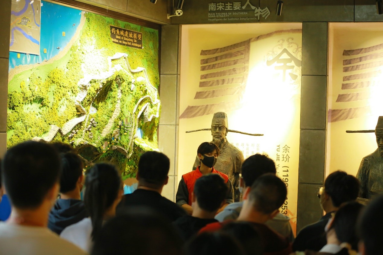 《天神折鞭——蒙哥汗战死钓鱼城之谜》这门课程在教室经过理论知识的学习后,把课堂移到了钓鱼城博物馆。本门课程的主讲老师、地域文化与城市发展研究院教师杜春梅带领同学们通过参观的方式,领略钓鱼城古战场的历史故事。在钓鱼城博物馆工作人员的讲解下,同学们了解到守城将领、地理位置、抗战过程等。外国语学院英语8班同学尹诗颖感叹道:“每一段历史都是值得学习的,通过理论和实际结合的课堂,在我眼前再现了蒙哥汗战场,是很有意义的。”