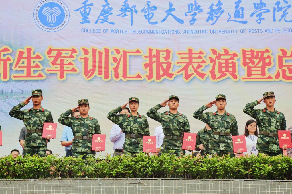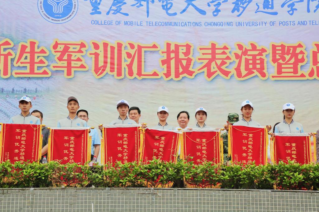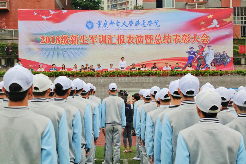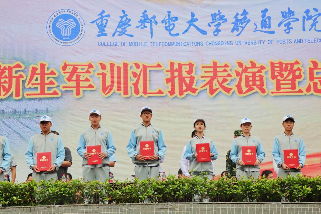表彰会上,新生军训团政委陈帅老师宣读《重庆邮电大学移通学院关于表彰2018级新生军训工作先进集体和优秀个人的通报》 。校领导和部队首长依次向此次军训工作中表现突出的优秀教官、各项先进集体和个人进行表彰,并颁发锦旗和荣誉证书。