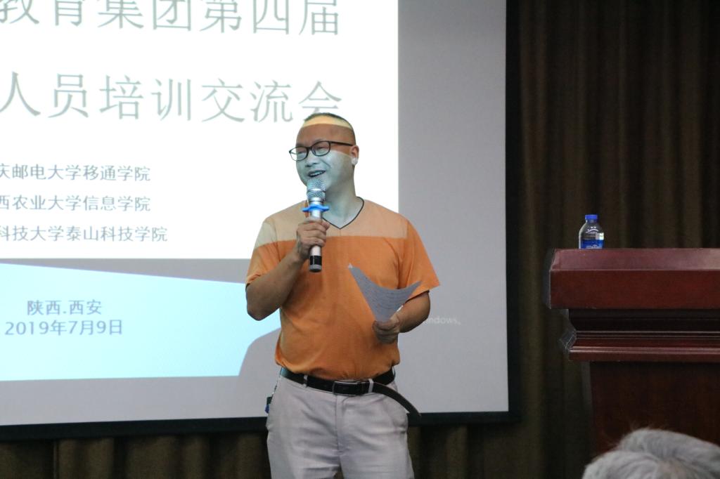 重庆邮电大学移通学院通信与物联网工程学院教研室主任王玮代表第一组发言,他讲到,上午西北工业大学教授、国家级教学名师段哲民教授的讲话让全体学员受益匪浅。段教授指出,欲打造金课,必须从领导层、管理层、教师执行层,三个层面下手,要坚持正确的引领方向,建立有效的管理制度,提高教师的教学能力。段教授结合自身长期的教学管理经验,为集团三校打造金课,提高教学质量,指明了行动方向和切入点。“四位一体”重在执行,集团各校采用的办学模式是“四位一体”,在执行之初,可能有部分教师和部分学生理解不透彻、执行不到位、落实不具体,作为教学管理人员,有义务去引导、有责任去督促、有权力去检查,同时作为教学管理人员,要积极主动与其他部门协调沟通,以便更好的促进商科教育、完满教育、通识教育、专业教育的真正融合,让“四位一体”落地、生根、见效。他希望学校领导尽早启动自编教材建设,让教材更适应我们的学生,更适应我们的办学模式和人才培养目标。希望集团和学校领导本着关怀教师、激励先进、制定措施、创造条件、加大工作量补贴,增加教师的获得感。采取更有效的措施,留住更多青年才俊,培养优秀教师梯队,打造金牌教学团队,传承优良教学方法。