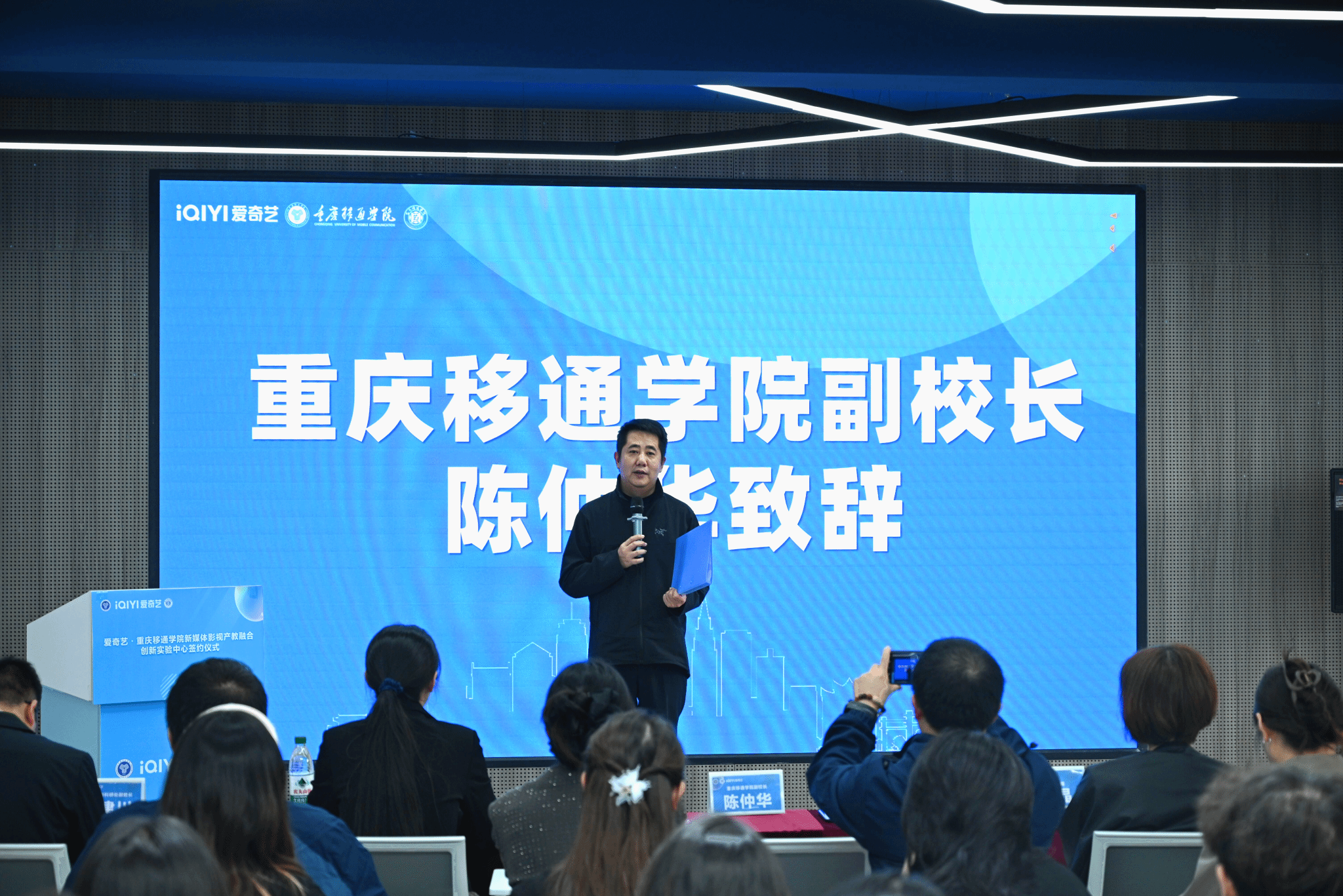 创新中心是由重庆移通学院与爱奇艺为加强校企合作,推动产教融合而联合共建的实验基地,旨在整合双方优势资源,培养更多新媒体影视创新人才。签约仪式上,重庆移通学院副校长陈仲华首先发表了热情洋溢的欢迎辞。他指出,学校将依托爱奇艺的行业资源和平台优势,结合艺术传媒学院的专业特色与双体软件精英产业学院的企业化培养模式,共同设计课程体系、开发实训项目、搭建实践平台,为学员们提供从理论学习、实践操作到就业创业的全方位、全链条服务。陈仲华副校长表示,通过与爱奇艺的合作,学院将能够更好地对接行业需求,为学生提供实践平台,同时也为企业输送更多优秀人才。