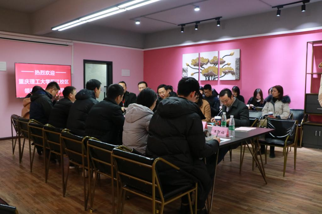 12月25日,重庆理工大学两江校区党委副书记杨龙、叶彬强,管委会副主任徐勇,人工智能学院党总支书记俞宁,团委副书记刘广超以及14位辅导员一行前来我校进行交流调研。我校院长助理周伟、李文豹,学生处副处长陈帅,书院部副部长穆春江,智能工程学院副院长李巧,学生处学生科科长王万福等校领导及各职能部门负责人进行了亲切接待。