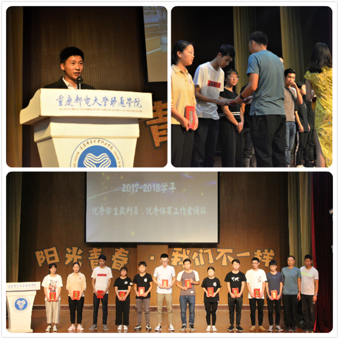 十年移通,六载竞体,6月20日16点,重庆邮电大学移通学院2017-2018学年竞技体育表彰大会在下里巴人剧场隆重举行,分管校领导、完满教育各职能部门代表、校属体育运动队、九大院系体育协会(体育部)代表参加了本次大会。全体体育人在会上一起回忆青春的记忆、铭记体育的意义、感受竞技的阳光。