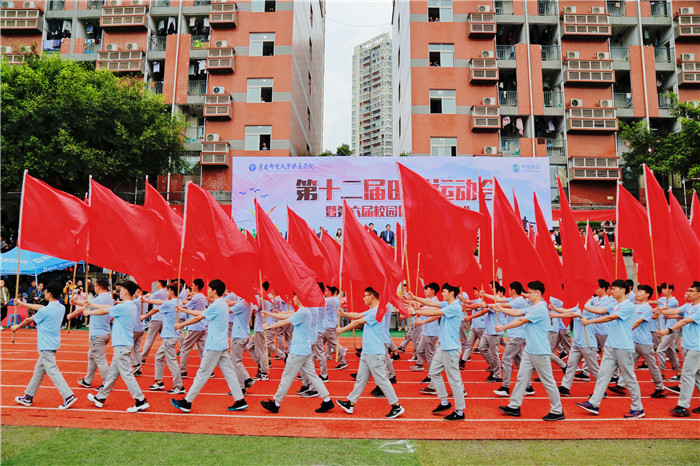 春色一年年,年年花共妍。4月11日上午,移通学院广阔的绿茵场上旌旗招展,号角喧天,一年一度的春季田径运动会在全校师生的期盼中如约而至。重庆翔美教育集团CEO李茂军女士、重庆邮电大学移通学院全体校领导出席开幕式,各教学单位、各职能部门负责人以及全校万余名师生参加开幕式。校长张德民教授致辞,副校长王征主持开幕式。