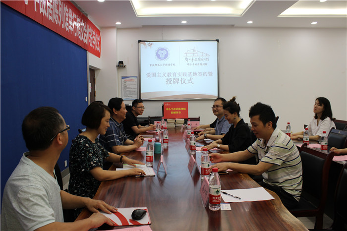 为深入贯彻落实习近平在全国高校思想政治工作会议上的讲话精神,切实加强大学生的爱国主义教育,深化立德树人教育工作,我校充分利用优质社会资源,引导大学生在社会实践中树立和践行社会主义核心价值观,5月17日上午十点,我校与邓小平故居陈列馆合作成立爱国主义教育实践基地签约及授牌仪式在417会议室举行。院长张德民教授、党委书记苏开荣教授、党办院办主任张衍学出席了签约仪式。邓小平故居陈列馆何青副馆长、综合部主任任非、展研部主任龙为羽、外联部部长段慧娟、综合部信息组组长蔡少锷等应邀出席了会议,会议由思政教学部主任邓燕主持。