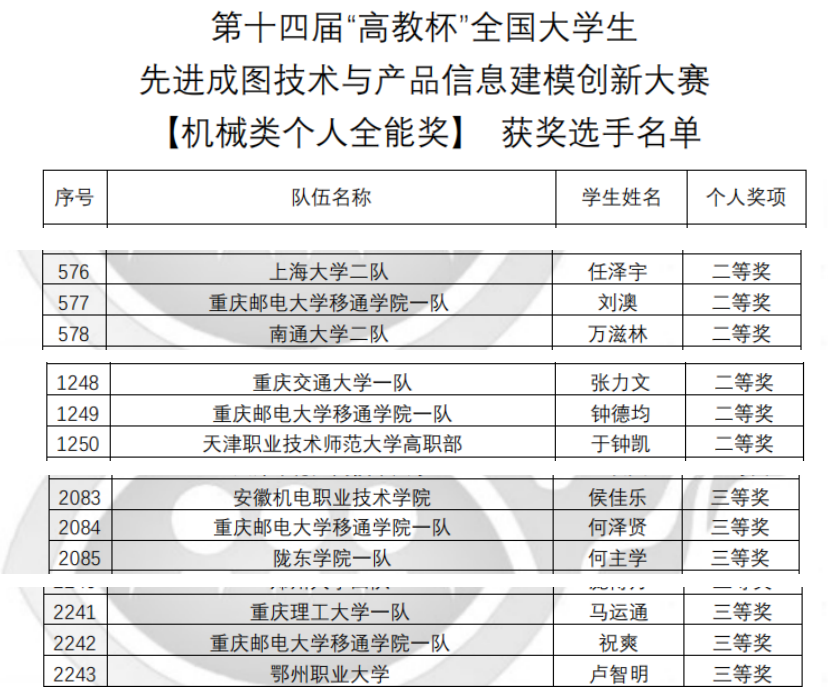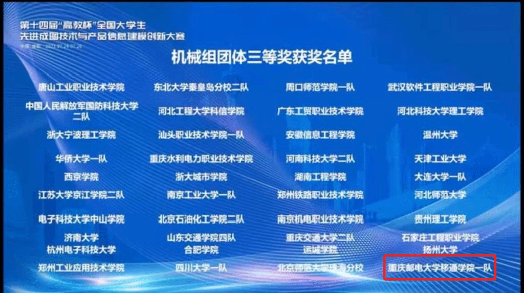 7月23-27日,第十四届“高教杯”全国大学生先进成图技术与产品信息建模创新大赛决赛在四川西南交通大学开赛。我校学子再创佳绩,共获得全国团体三等奖1项,全国个人全能二等奖和三等奖各2项。