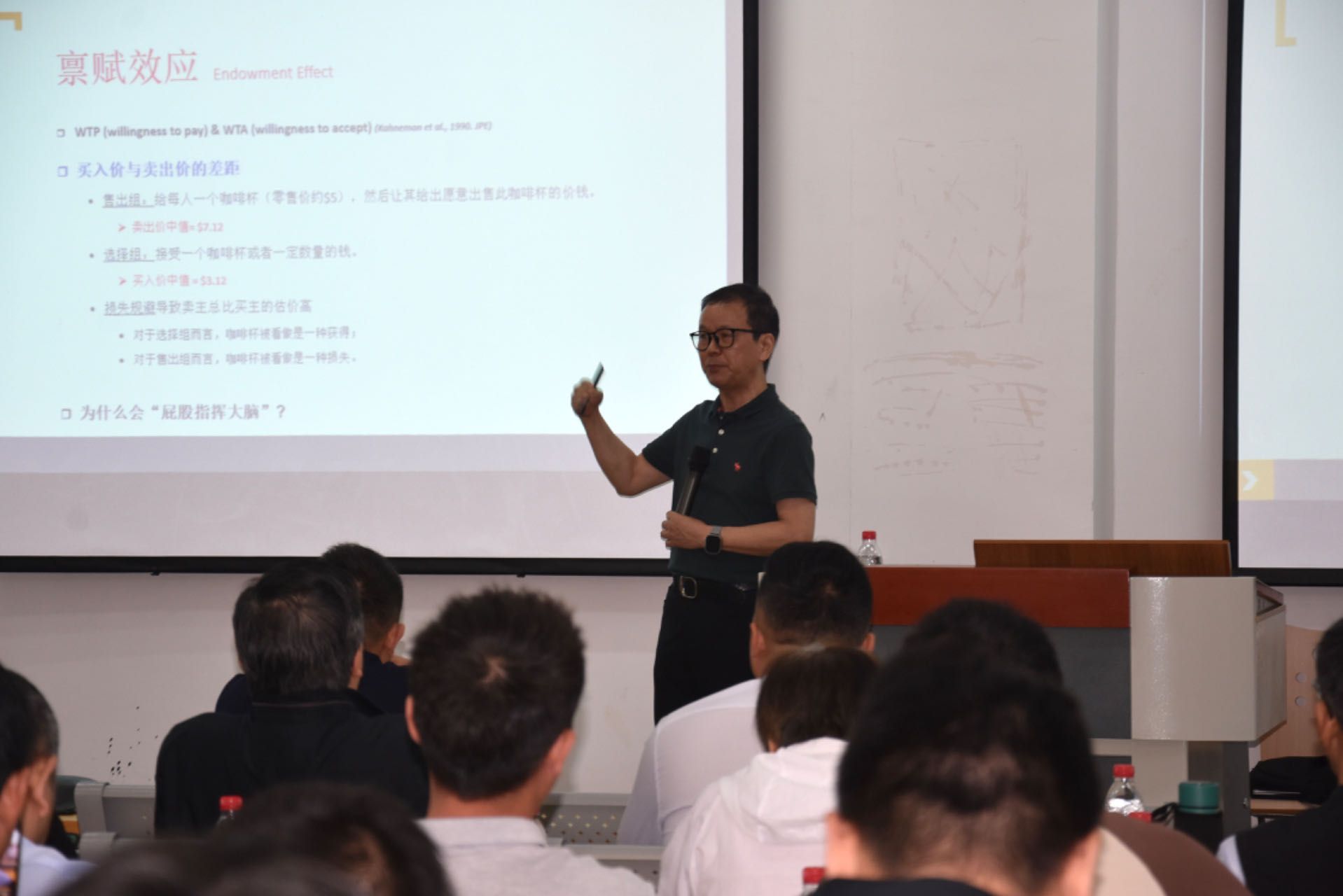 随后,中国新商科大学集团商科教学委员会主任、冲突营销学院教授、重庆大学市场营销学博导廖成林教授发表了题为《行为决策与市场智慧》的精彩报告。廖教授以其丰富的教学经验和独到的市场洞察,为在座的企业家们和师生揭示了行为决策背后的心理机制和市场智慧,为企业家和师生在激烈的市场竞争中做出更明智的决策提供了宝贵的指导。