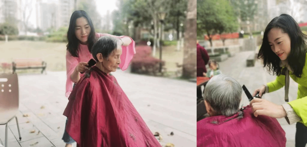 据悉,邓秋菊老师已经独自一人做了四年义务理发活动。平日在自己所居住的小区定期为老人、小孩义务理发。“我父母和女儿的头发一直都是我在剪,偶然一次我母亲说起现在外面理发价格昂贵,年龄大了也不知道可以去哪剪,我便想着我有这个技能是不是可以为小区里的老人提供这项服务。”想法很快便落地,邓秋菊老师靠着一方小板凳,三把电动理发器,一年四季为小区里的老人小孩剪去“头上烦恼”。