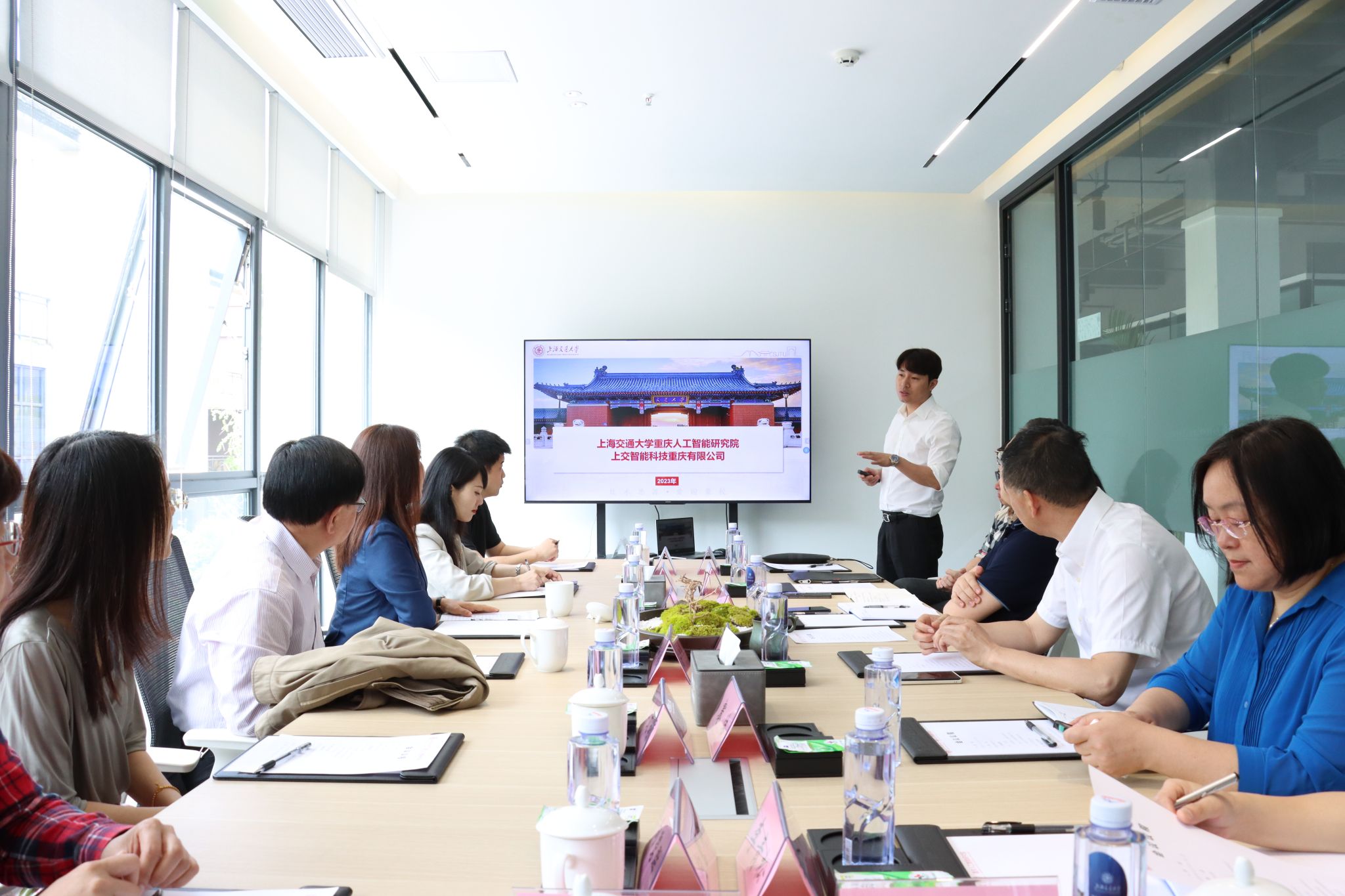 参观结束后,双方进行了交流座谈。上交智能科技重庆有限公司首席运营官李磊首先介绍了研究院目前发展概况,以及研究院平台公司定位、发展方向、业务方向、企业孵化、核心成员等情况。