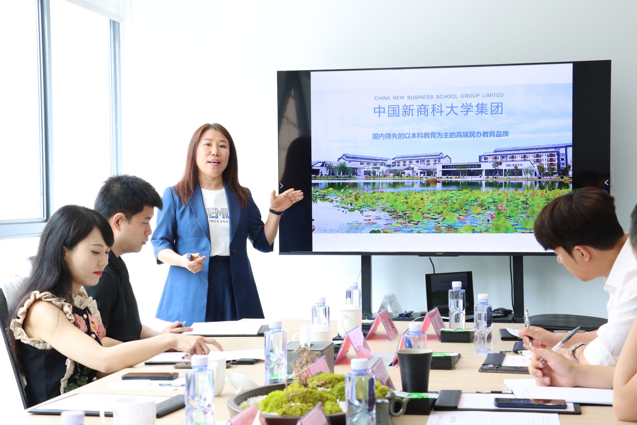 中国新商科大学集团副总裁郑艳丽围绕集团定位、创新教育模式、培育体系、办学模式、特色及成效等情况进行介绍。郑总表示,集团三校坚持信息产业商学院的定位,实行“四位一体双院制”特色育人模式,这种育人模式将为社会提供大量优秀人才,与市场人才需求高度吻合,希望双方在特色中紧抓共性,借助双方资源实现合作共赢。