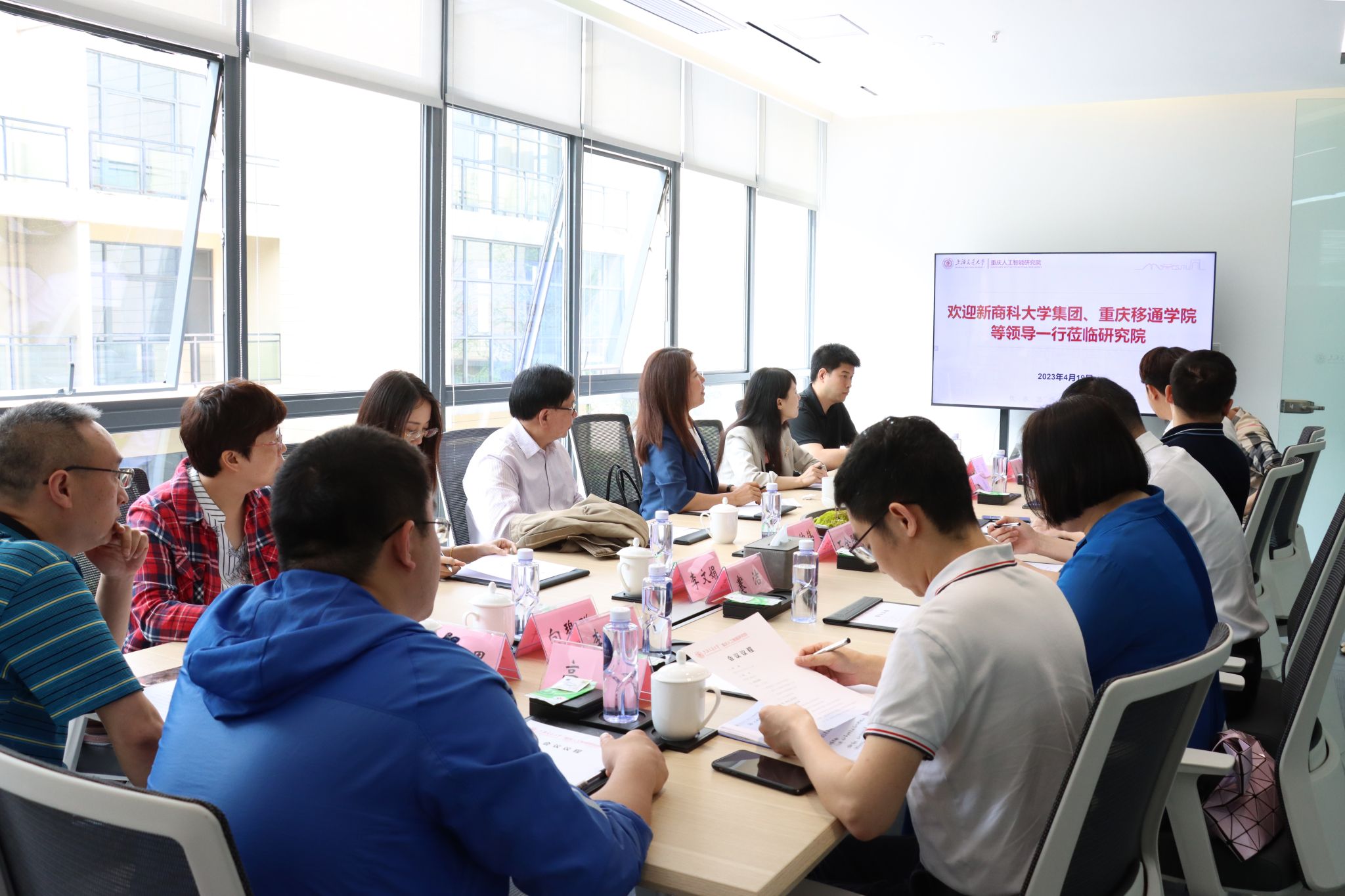 4月19日上午,由中国新商科大学集团副总裁郑艳丽带队,新商科大学集团信息化领导小组成员安堃、我校通信与信息工程学院院长李文娟、信息安全学院副院长王宁、大数据与计算机科学学院副院长向碧群等一同前往上海交通大学重庆人工智能研究院参观交流,双方还特别邀请了原重庆邮电大学党委书记徐仲伟、重庆国际物流枢纽园区副总经理蹇洁出席本次参观交流活动。