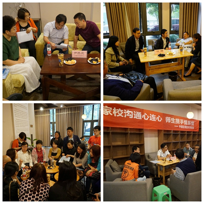 学校咖啡厅里,学生们早已经摆好了桌椅,在咖啡的浓香中,尹院长、任博老师、侯宇晶老师、廖梅梅老师、胡方洋老师、以及李佳辅导员与围绕在他们身边的家长进行友好而亲切的会谈,解答家长所提出的相关问题。