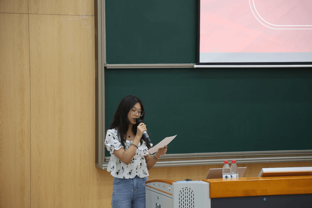 公共基础教学部贾冰雪代表新教师发言。她分享了自己对入职培训的感受,展望了自己在教学方向上的未来发展,并围绕乐教、乐学、创造、创业的校训进行了分享。