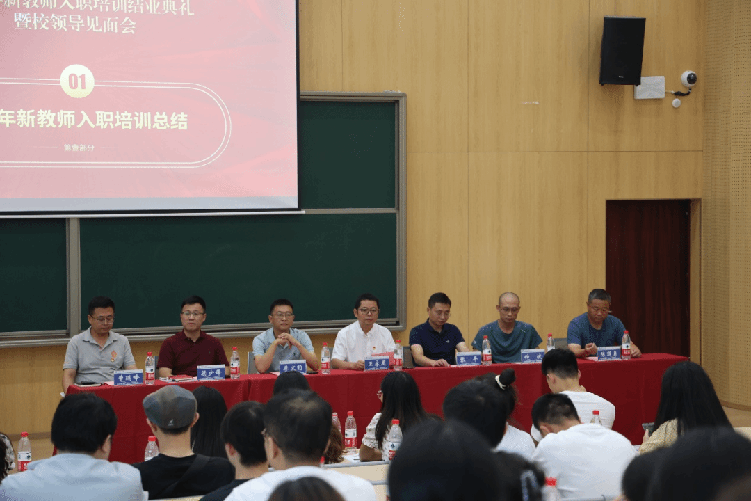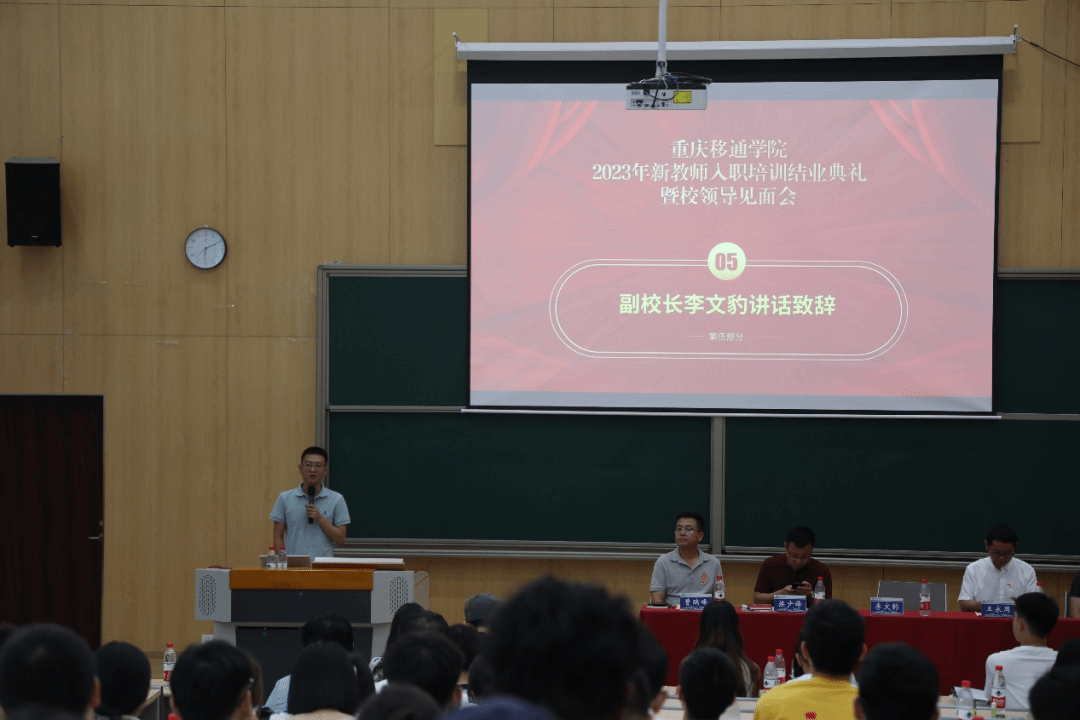 8月31日下午,我校2023年新聘教职工入职培训结业典礼暨校领导见面会分别在合川校区下里巴人剧场、綦江校区玉棠阶梯书院隆重举行,校长吕翊,党委书记何先刚,常务副校长王永周,副校长周伟、王永刚、李文豹、张衍学及全体在校领导出席。