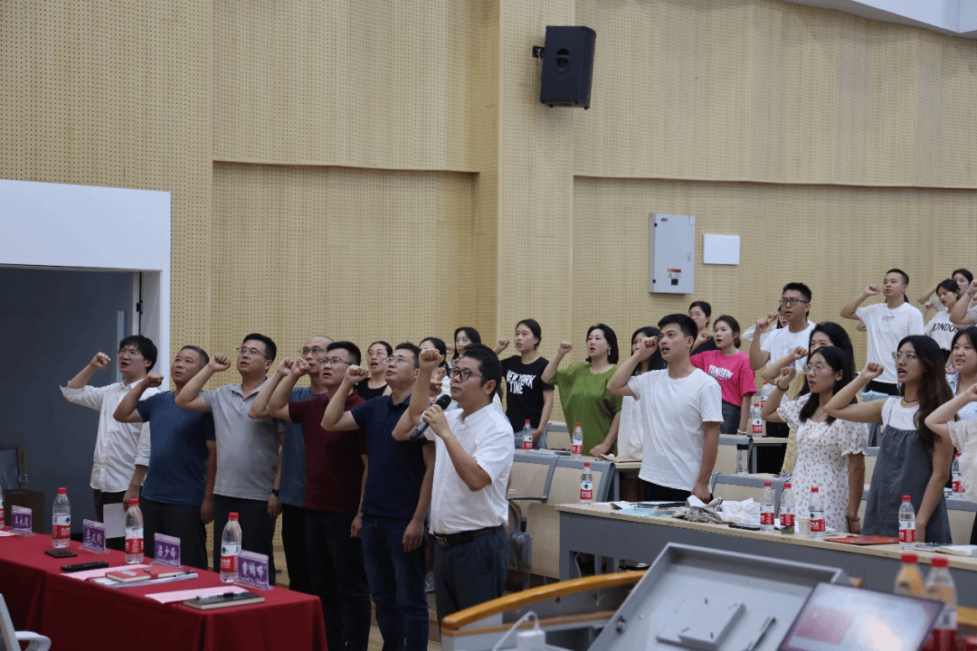 双校区全体新聘教职工分别在常务副校长王永周、校长助理刘枚带领下,面向国旗,庄严宣誓!