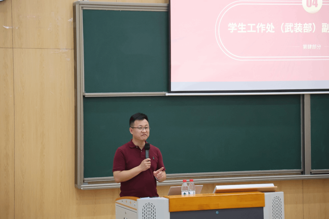 学生工作处副处长梁少锋发言,他与新教师们分享了自己在移通十余年工作中的体会与经验,为大家提供了有益的思路与想法。“任何时候,尽全力帮助学生解决问题,学生需要我们,我们也需要学生,被学生认可是一种幸福,移通的每一位学生都是闪闪发光的,也祝愿每一位老师在移通舞台上翩翩起舞,收获独属自己的职业幸福感以及教育岗位上的成就感,蜕变成更好的自己。”