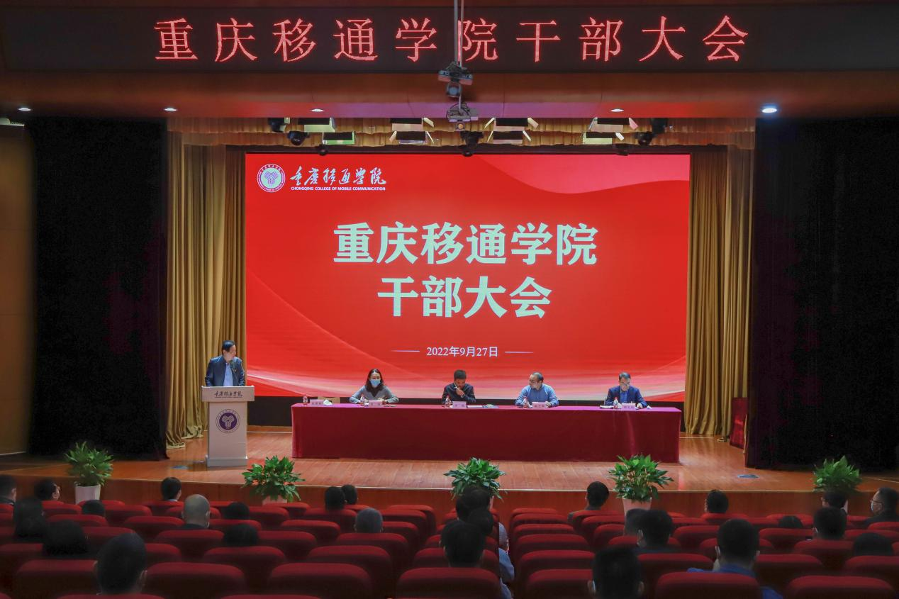 9月27日上午,我校在合川校区下里巴人剧场召开2022年干部大会,会议设置綦江分会场,以线上直播形式同步观看。重庆市委教育工委组干处处长江鹏、副处长姚文平,我校举办方代表王征以及双校区全体校领导、基层党组织书记、处级干部出席会议。会议由校长张德民教授主持。