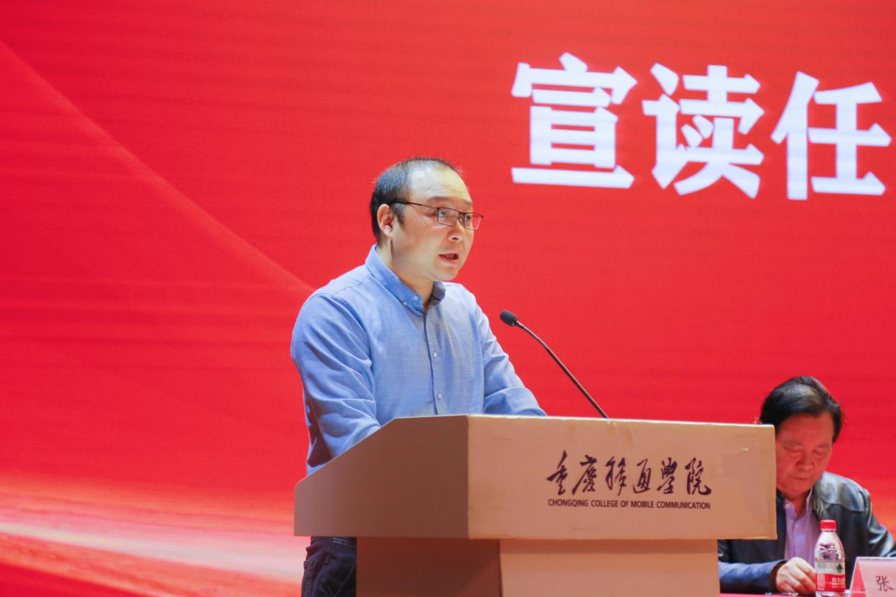 重庆市委教育工委组干处副处长姚文平宣读重庆市委教育工委关于何先刚等2名同志任免文件。