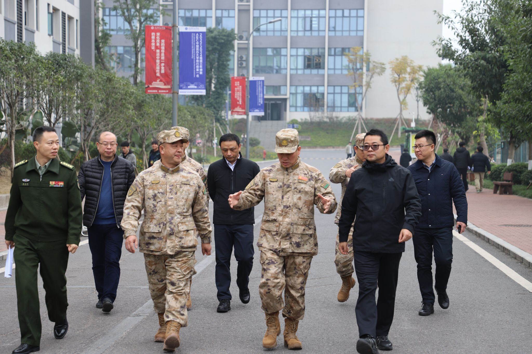 12月26日下午,重庆警备区战备建设局副局长付红领,綦江区委网信办主任王笔戈,区大数据发展局党组书记、局长肖成林,区人武部部长陈洪坤莅临重庆移通学院綦江校区参观调研。重庆移通学院常务副校长王永周、校长助理梁少锋及相关部门负责人陪同。