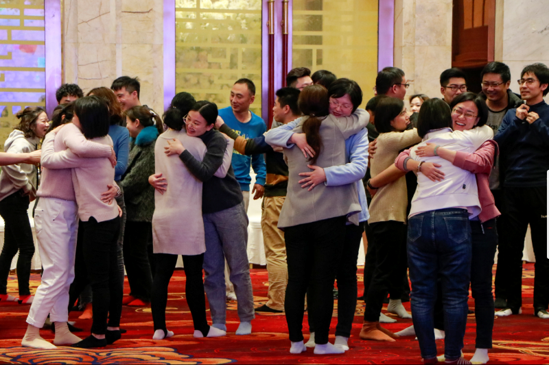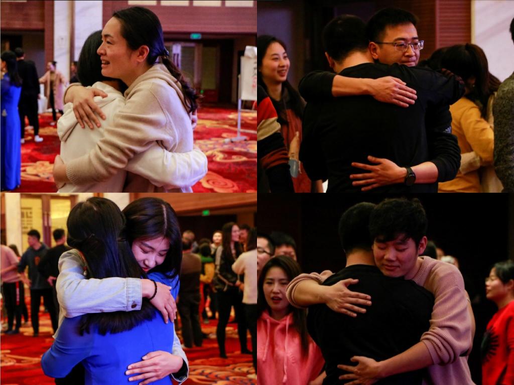 “希望大家突破年龄、性别、职务的局限,真心的去拥抱身边的人。”随后,在老师的引导下,每位学员在活动现场分别寻找了五个不同的人进行拥抱。体验到拥抱是表达爱最好的方式,拥抱也是最有力量的爱!