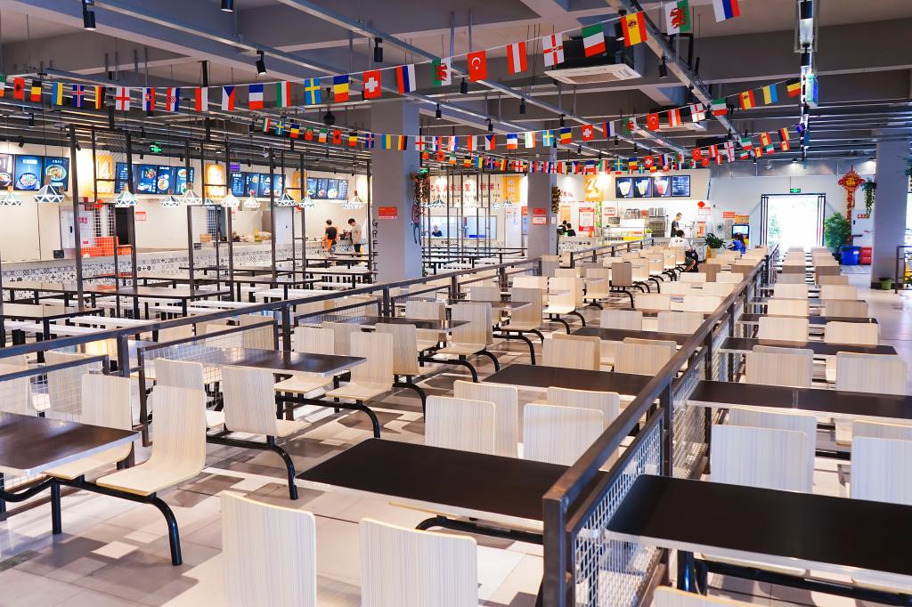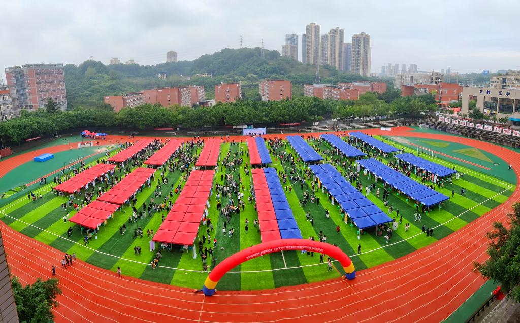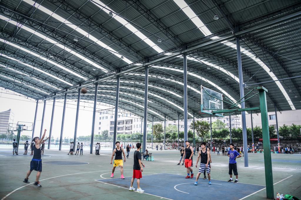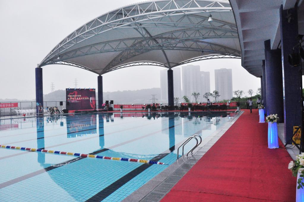 鲜红的跑道,风雨无阻的篮球场,干净纯澈的泳池