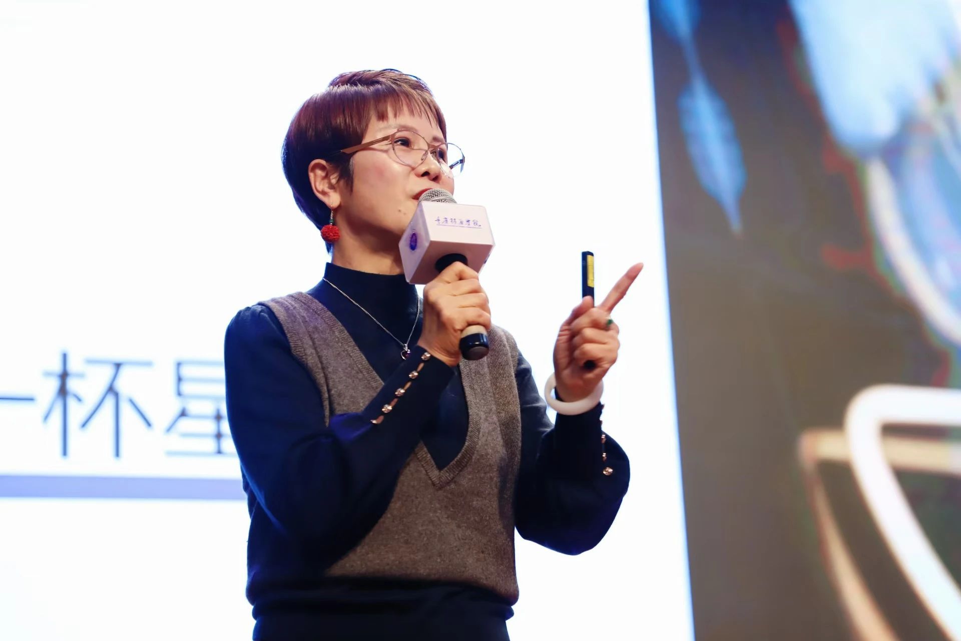 14:00,刘进拿着话筒,缓步走上讲台,身着深蓝高领毛衣搭配灰色背心,带着亲切的笑容,耳畔微微晃动的红色“咖啡樱桃”耳饰与讲座主题相呼应,增添一抹活泼色彩。“很高兴能见到这么多同学,那么多青春的面貌,各位老师、各位同学下午好。”现场音响里传来她欢快又激动的声音,一场与咖啡的邂逅就此开启。
