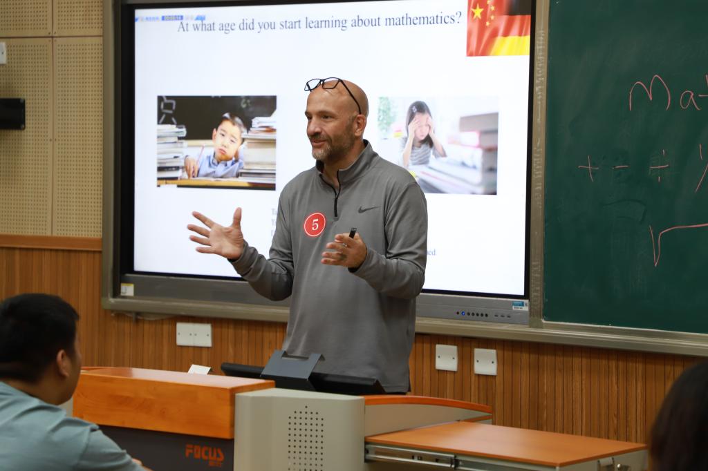 竞赛现场,参赛教师惟妙惟肖、声情并茂,展现我校教师较高的教学水平,展示新时代青年教师的责任与担当。通识教育部教师陈春彦的《生命科学中的伦理》课程以简单幽默的语言讲述生命奥妙的克隆技术和器官移植,通过与学生们互动以及解析实际案例推进学生对课程的理解;中德应用技术学院教师Peter采用幽默风趣的上课模式带来《英语口语》课程,通过互动逐步加深学生对口语的理解和记忆。