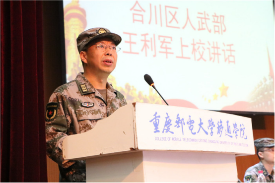 合川区人武部王利军上校讲话,他表示:“重庆某预备役部队是一支光荣的队伍,担负过大量应急应战任务,展现出了忠诚信仰、坚定信念、严格纪律、勇于担当的部队作风。重庆邮电大学移通学院具有优秀的国防传统,经常开展国防教育,为部队输送高素质兵员数量逐年上升,为国防做出贡献。预备役部队是中国人民解放军的重要组成部分,是建设祖国、保卫祖国的一支重要力量,加入到这支部队,使命光荣,责任重大,作为预备役的一员,更要熟悉人民军队的光荣历史,理解国防的重要意义,学习践行人民军队铁的纪律和英勇顽强的意志,奋发图强,要始终坚定听党指挥的政治信念,严格遵守国法军纪,用更高的标准严格要求自我,认真履行兵役任务,为祖国的和平安全、团结稳定提供有利保障。”