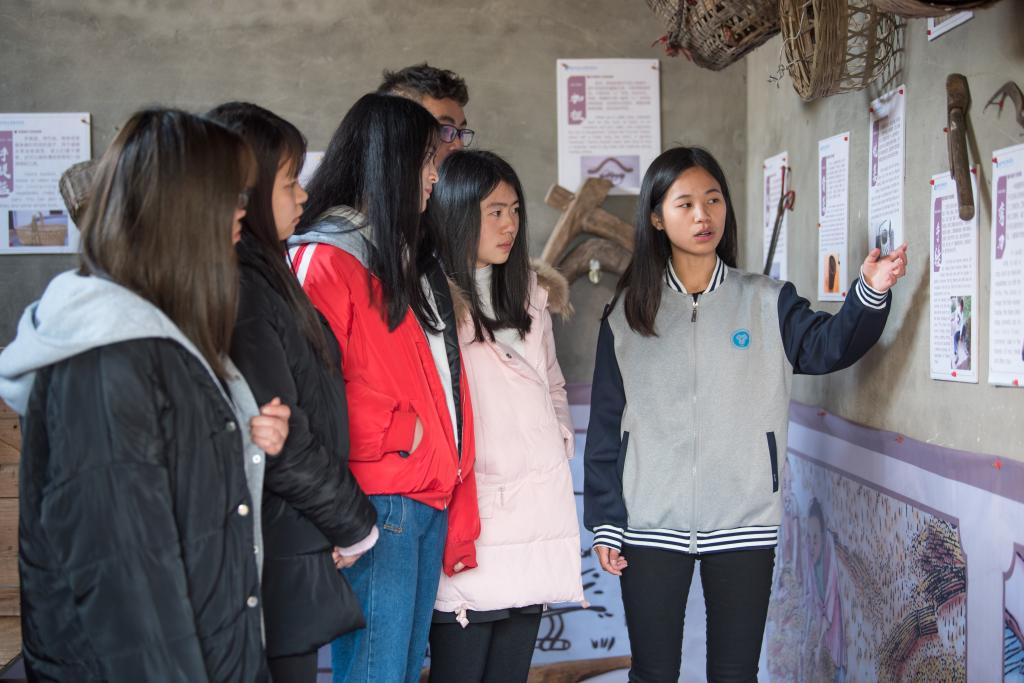 (开馆仪式结束后,到场师生代表在农耕协会志愿者的引导下参观展览馆。)