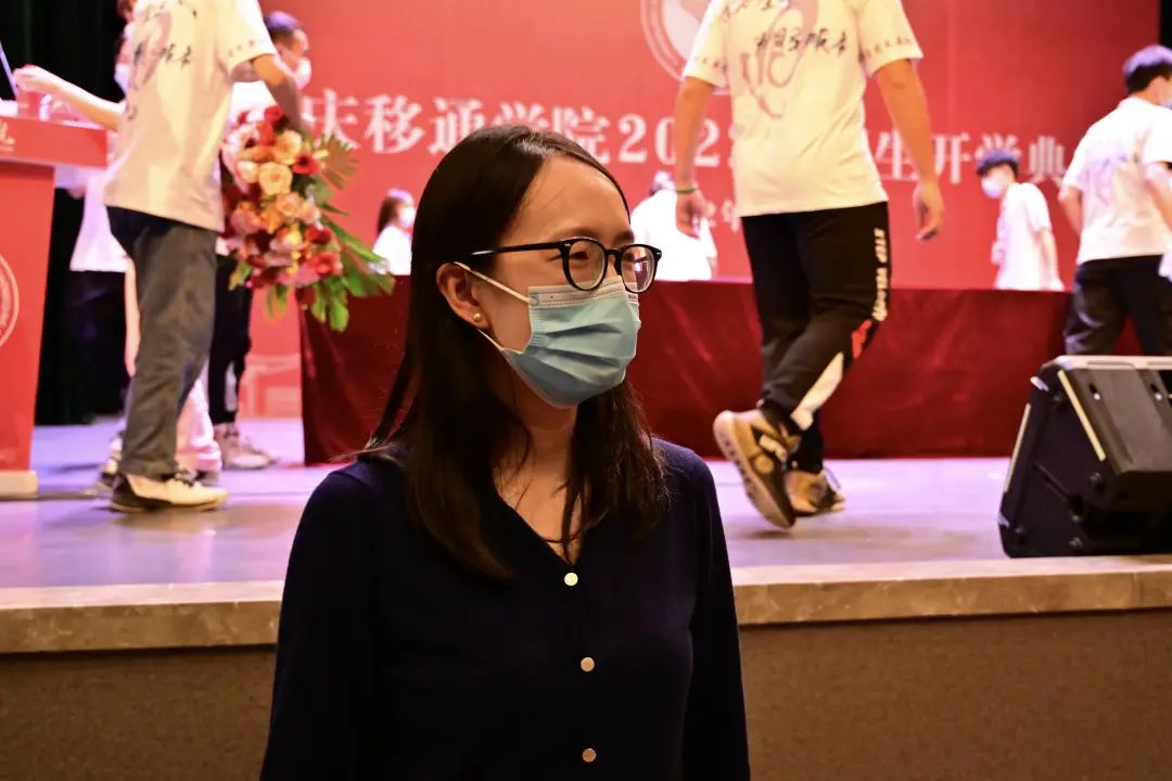大数据与计算机科学学院软件教研室主任邓秋菊把移通形容为一所青春绚烂而又充满底蕴的大学,她分享一次指导学生参加竞赛并取得市赛一等奖、国赛三等奖的经历,激励新生发扬勇于创新、自强不息,实现自我的精神。她以重庆近期山火、疫情中移通学子做出的贡献为例,希望2022级新生要具有勇于挑战自己的决心和勇气,创造自己心中的NO.1。